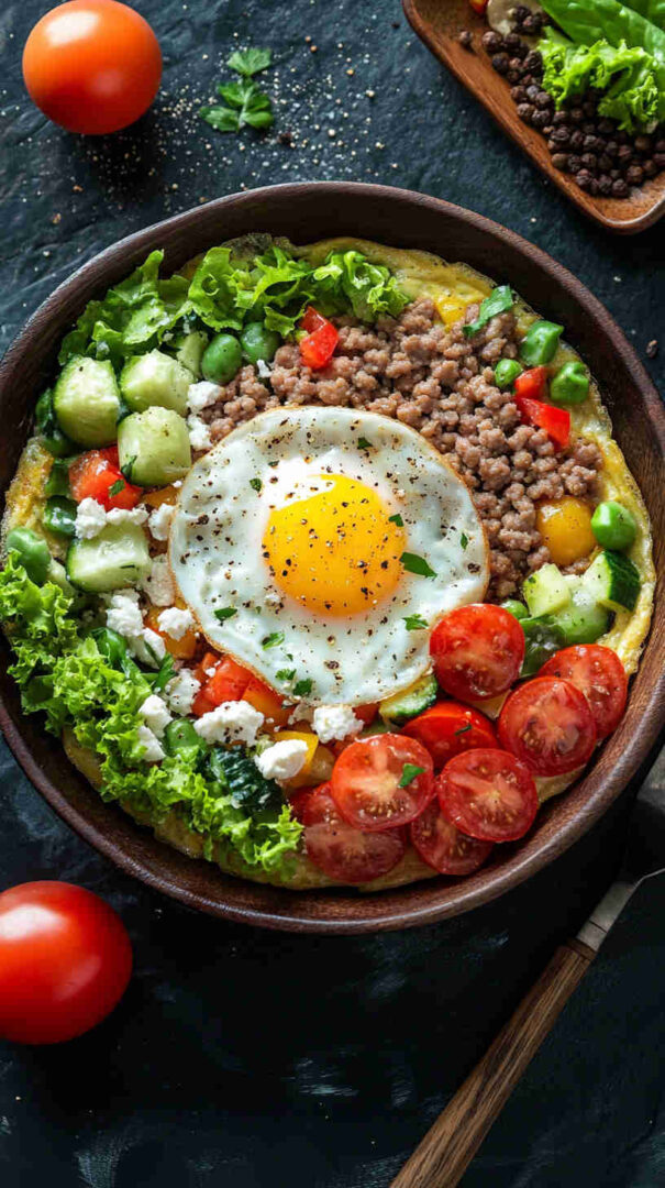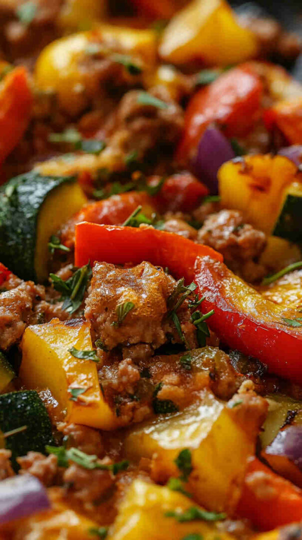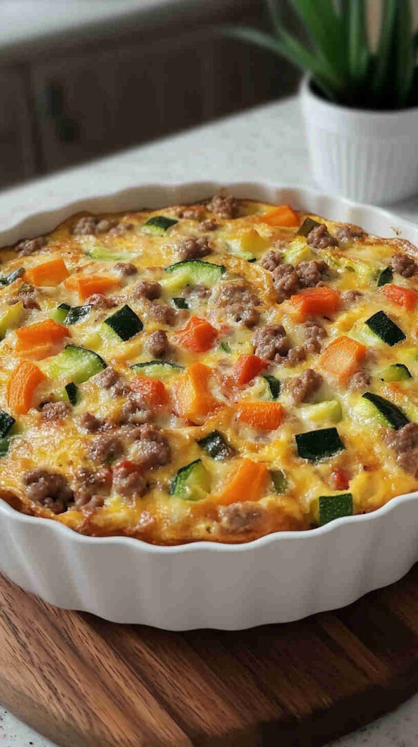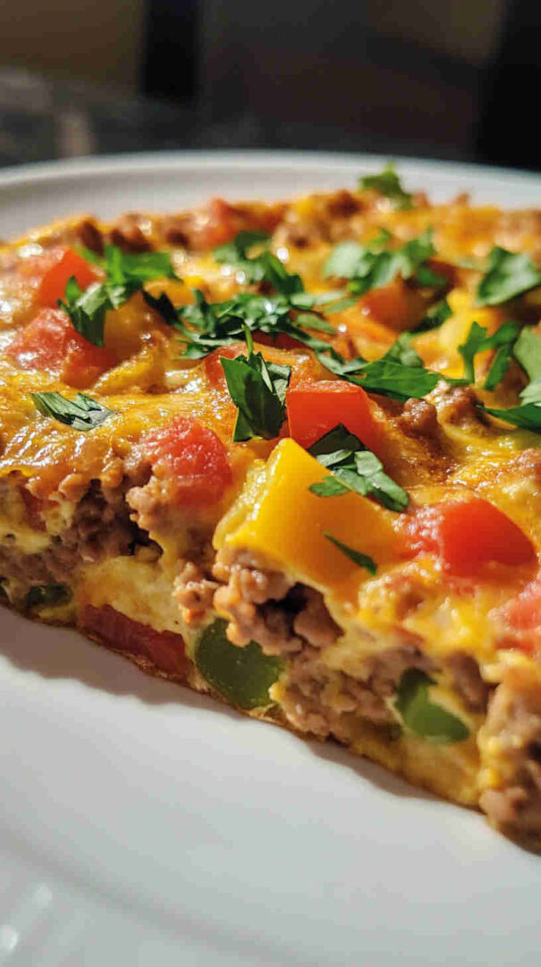 This vibrant ground turkey and veggie frittata packs lean protein with colorful bell peppers, spinach, onions, and zucchini, all bound by fluffy eggs and a touch of cheese. Baked until golden and puffy, it’s a nutritious, one-pan breakfast, brunch, or light dinner that’s bursting with fresh garden flavors and satisfying heartiness.