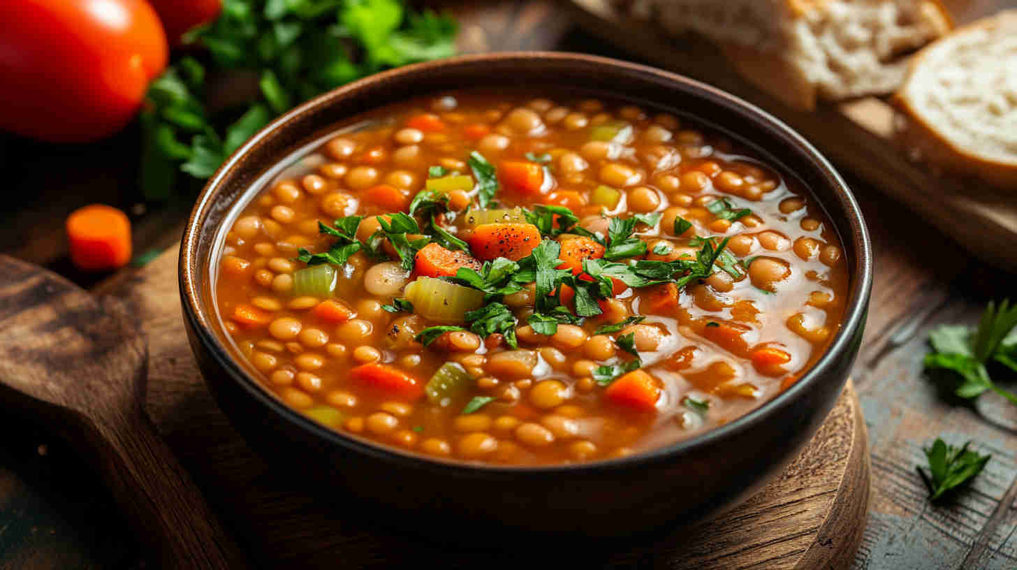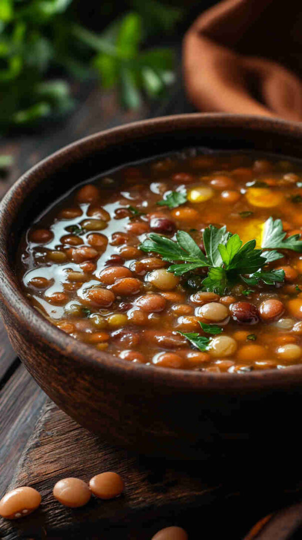 A cozy, protein-packed lentil and bean soup loaded with vegetables and warm spices.