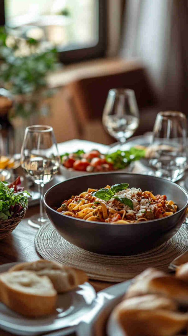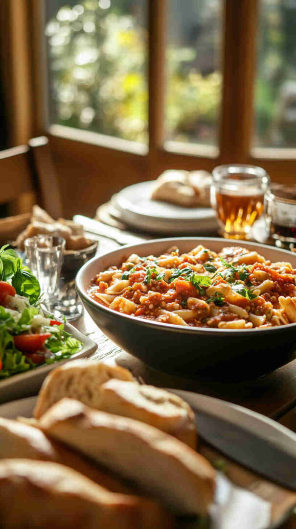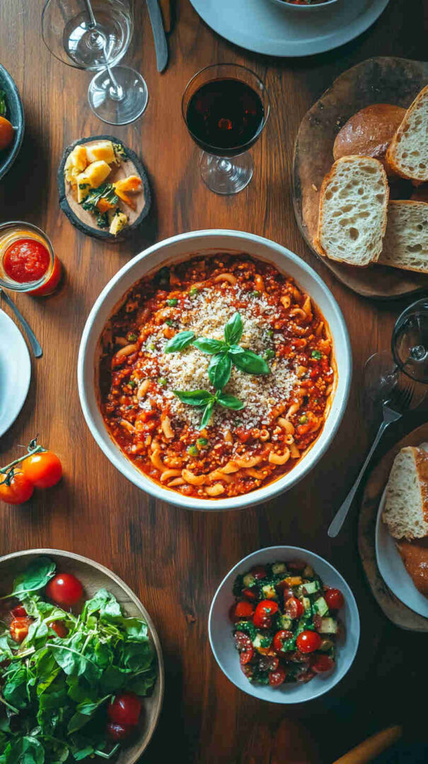 - Combine and serve — Drain pasta (save a splash of pasta water), toss directly into the sauce with torn basil (add off heat for bright flavor). If needed, add pasta water for silky coating. Plate up, garnish with extra basil and cheese if desired, and enjoy every hearty, flavorful bite!