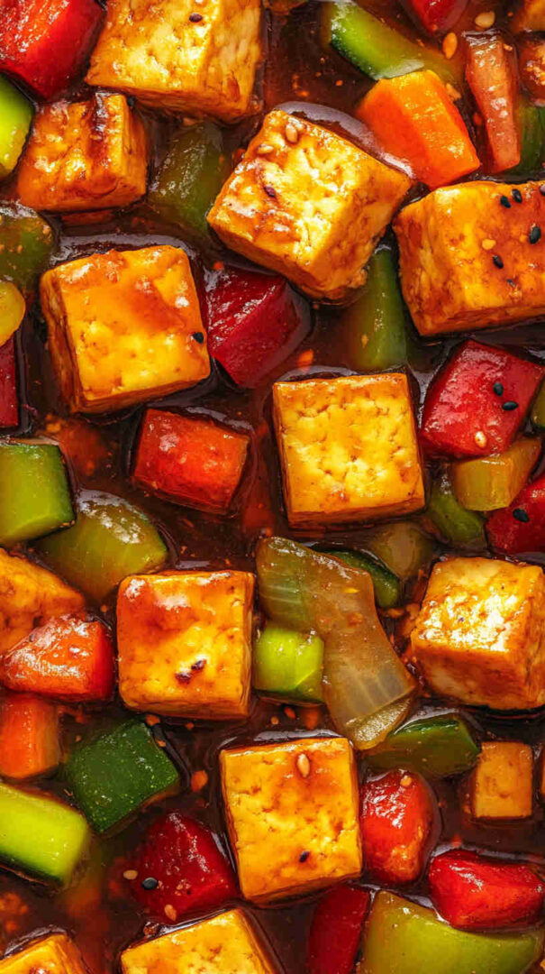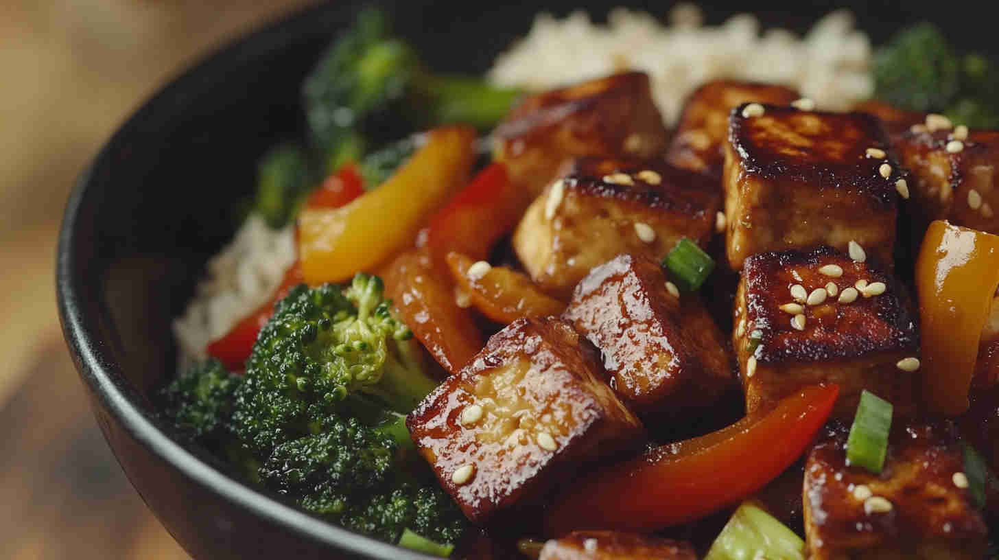 Crispy tofu and veggie stir-fry in savory sauce—high-protein, vegan, quick, and super satisfying!