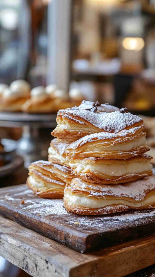 Crispy layered Neapolitan pastry shells filled with creamy cinnamon-citrus ricotta-semolina cream — pure Italian indulgence!