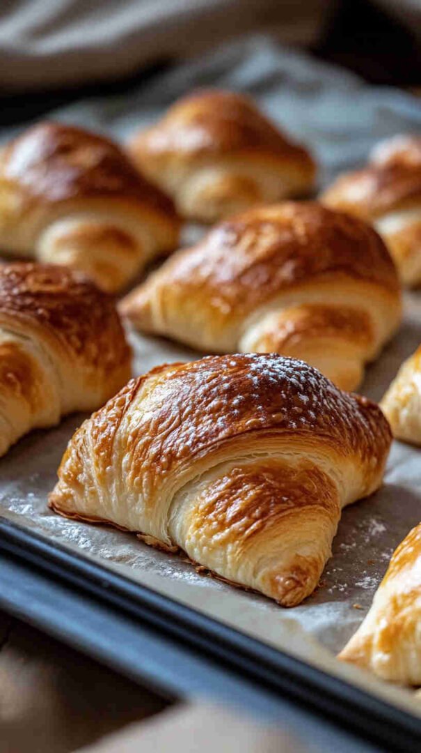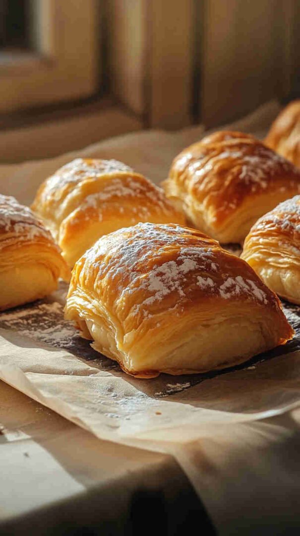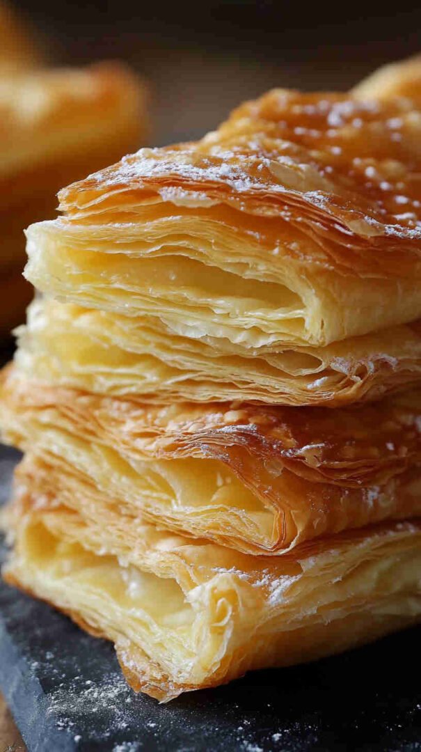 - Bake to perfection — Preheat oven to 200°C (400°F). Bake 25–30 minutes until deep golden, puffed, and super crisp. The layers will separate and open like little fans — so beautiful!