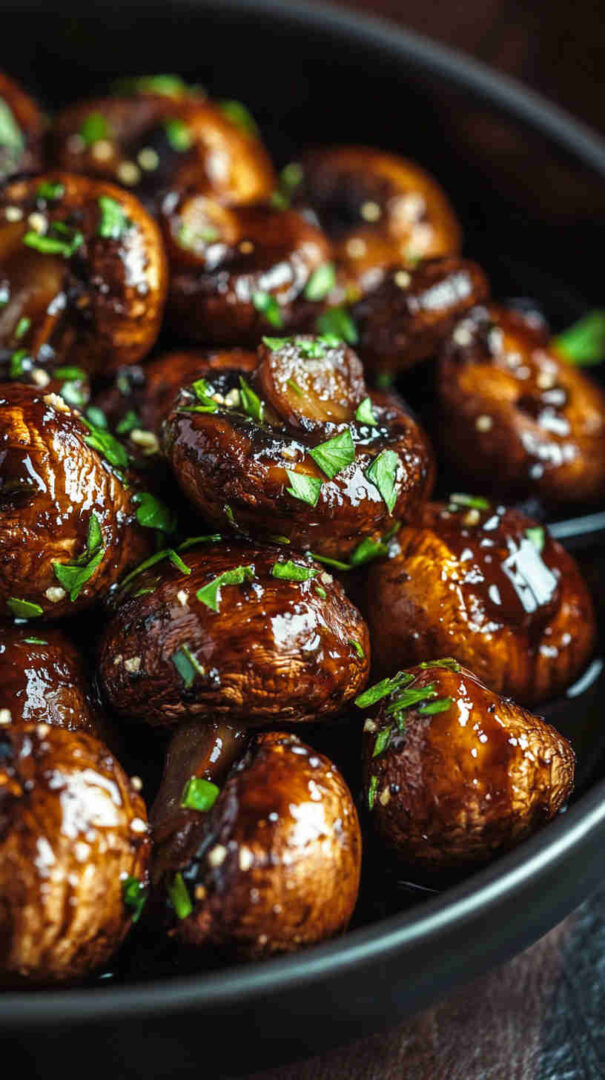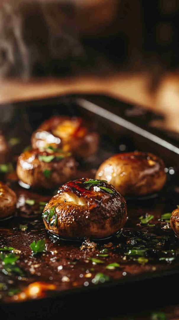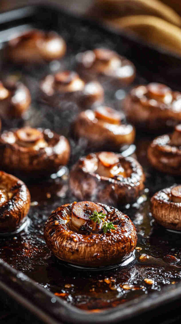 Juicy balsamic roasted mushrooms with garlic and herbs—easy, flavorful, and irresistibly caramelized