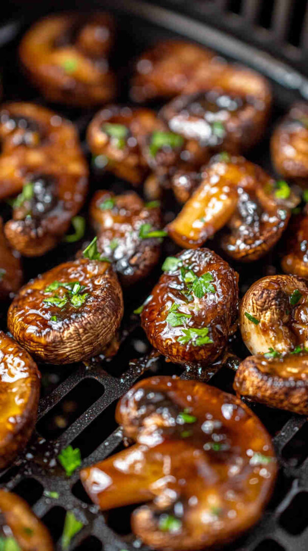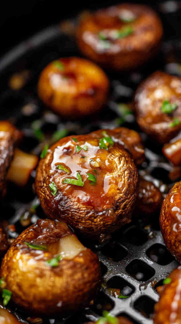 Sticky, sweet-savory honey garlic mushrooms air-fried to juicy perfection — quick, flavorful, and irresistibly addictive!