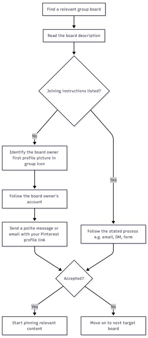 Step 1: Read the board description first. Most active group boards include joining instructions directly in the description. Common formats include an email address to contact, a link to a Google Form, or a direct message request.