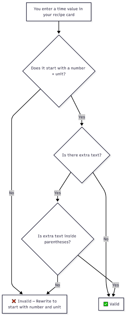 Valid vs. Invalid Time Inputs for Recipe Cards