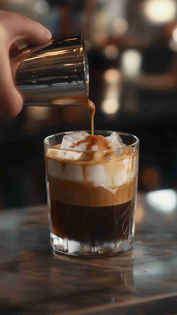 - Pour the frothy goodness — Carefully strain or pour the shaken espresso mixture over the ice in your glass, letting that lovely foam cascade in.