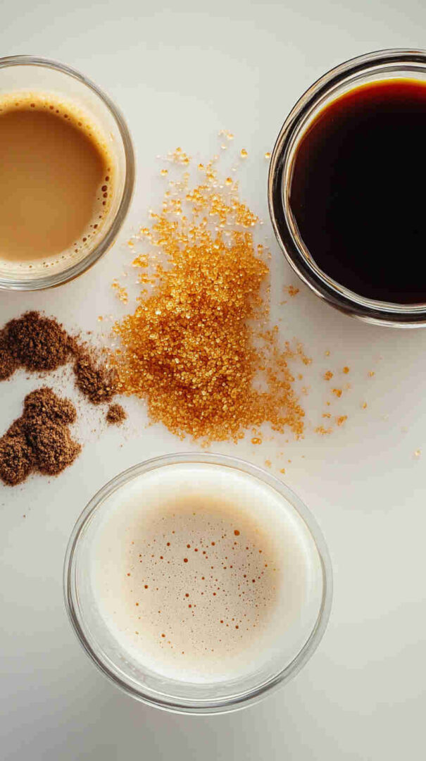 Brown sugar brings a rich, caramel-like depth with subtle molasses notes that regular white sugar simply can’t match, giving this drink its signature cozy sweetness. Freshly brewed espresso is essential—use strong, high-quality beans or pods for bold flavor without bitterness.