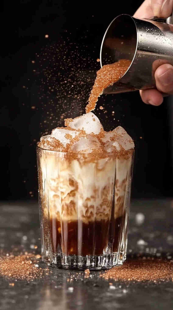 - Add the sweet foundation — Place 1–2 tablespoons of brown sugar into the bottom of your jar or shaker. Add the ground cinnamon and optional pinch of salt—this trio creates the warm, caramel heart of your drink.