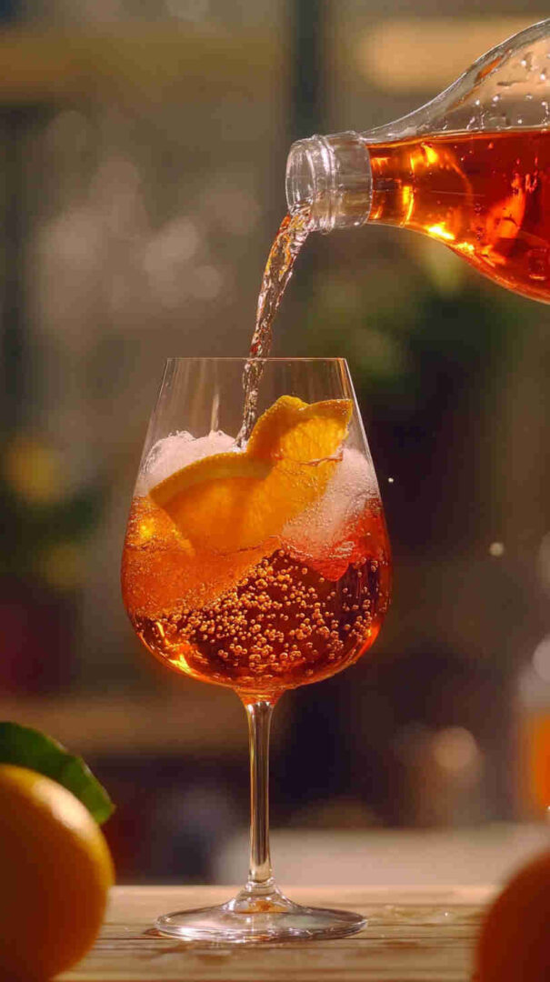 For a non-alcoholic version, substitute Aperol with a bitter orange syrup or alcohol-free aperitivo and use sparkling grape juice or non-alcoholic sparkling wine. In winter, serve it warmer with a cinnamon stick or switch to a hot version with mulled elements, though it shines brightest chilled in summer.