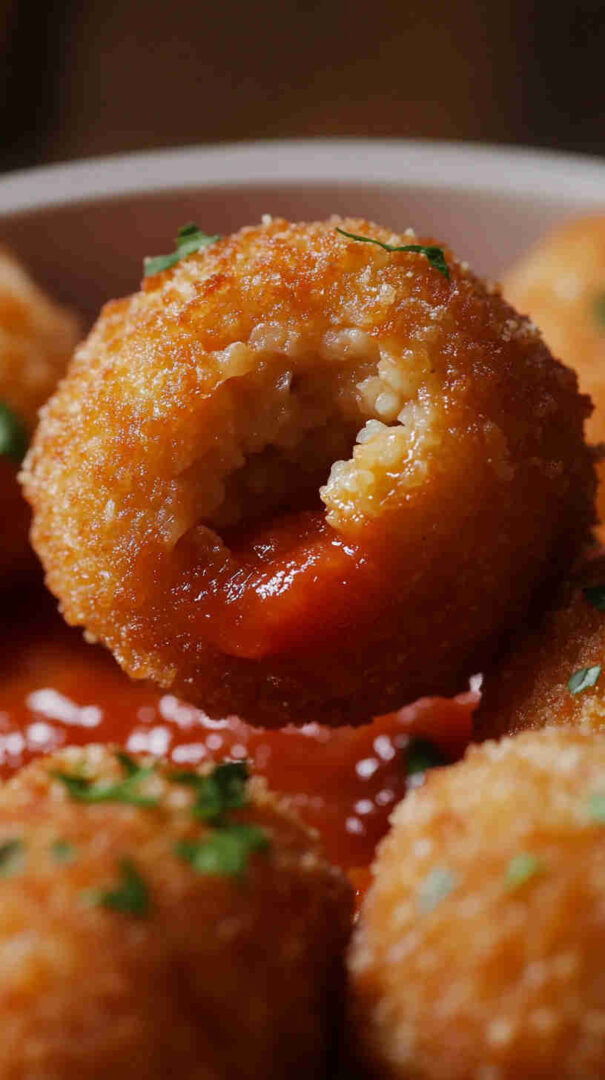 They’re a showstopper appetizer for parties, family gatherings, or game days, looking impressive yet surprisingly approachable to make at home. The contrast of textures is addictive: that satisfying crunch giving way to warm, oozy mozzarella and rich ragù. They’re versatile, make-ahead friendly (assemble and fry later), and evoke the joy of Italian street food without needing a plane ticket to Sicily.
