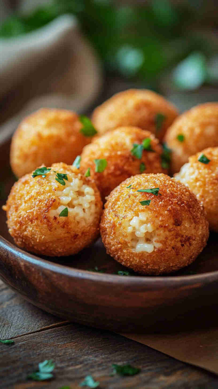 Add saffron to rice for golden color and subtle aroma (Milanese-inspired). For seafood lovers, fill with shrimp or tuna. Swap mozzarella for fontina or provolone. Use leftover risotto Milanese or plain risotto to save time. Gluten-free: coat with gluten-free breadcrumbs and flour alternative.