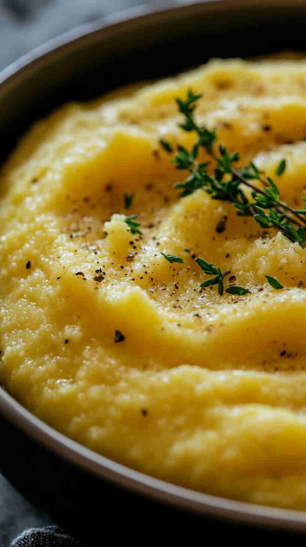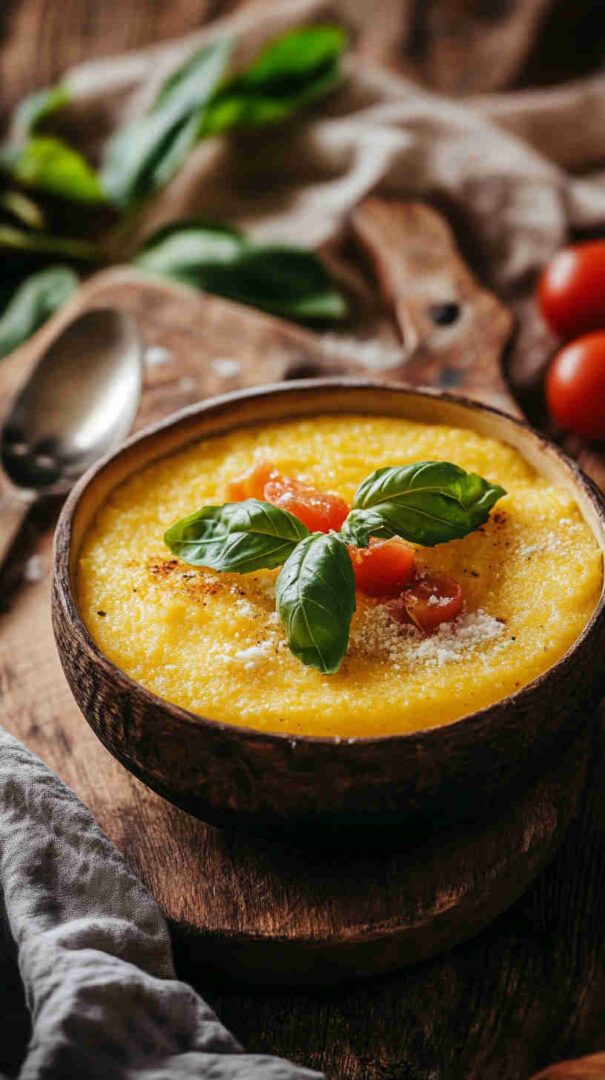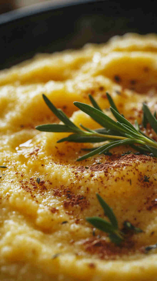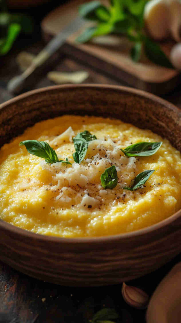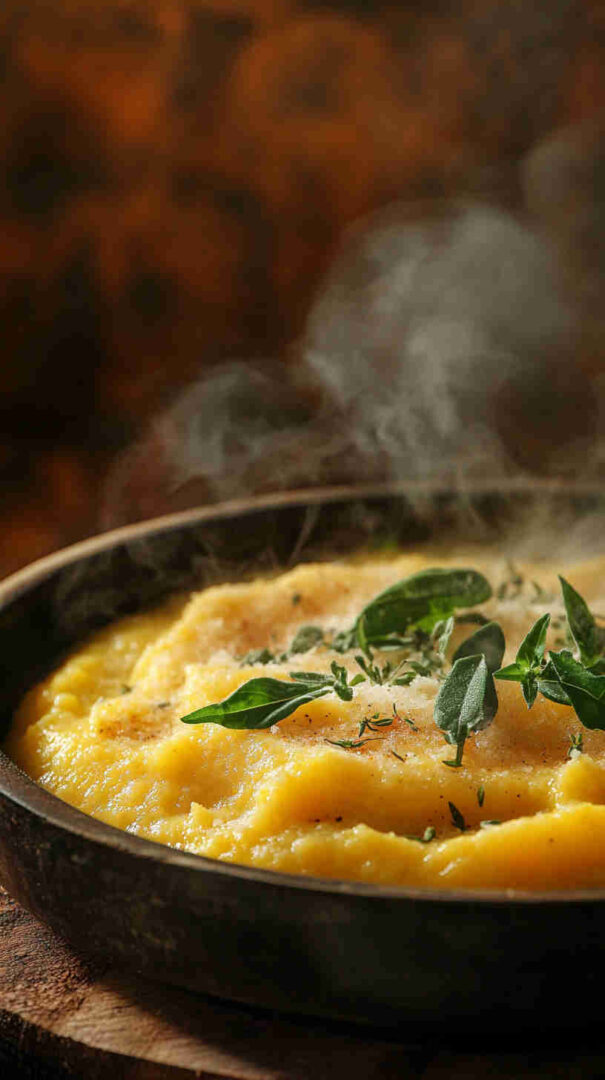 Creamy Italian polenta loaded with Parmesan, Pecorino, and fresh herbs—cozy, cheesy breakfast bliss in a bowl.