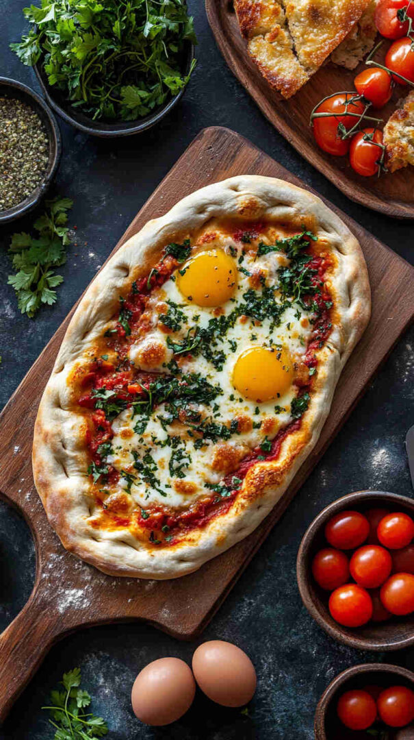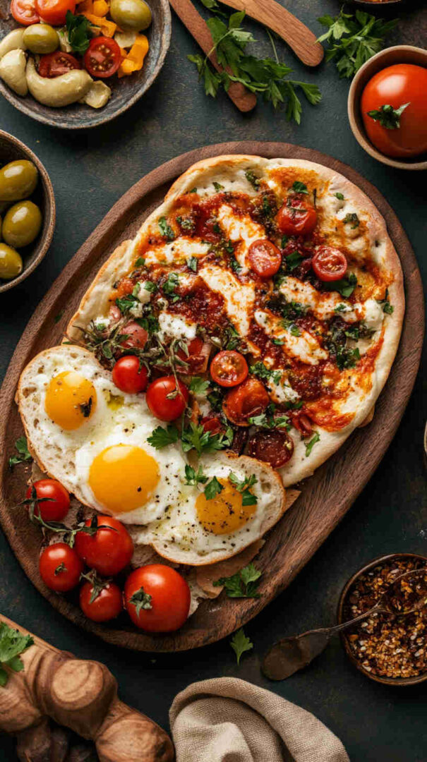 This Italian Brunch Flatbread with Tomatoes and Mozzarella features a crisp, golden flatbread base topped with creamy fresh mozzarella, juicy sliced heirloom or cherry tomatoes, fragrant basil leaves, a drizzle of extra-virgin olive oil, and a sprinkle of flaky sea salt. Baked until bubbly and finished with balsamic glaze, it’s a light, elegant, crowd-pleasing brunch centerpiece.