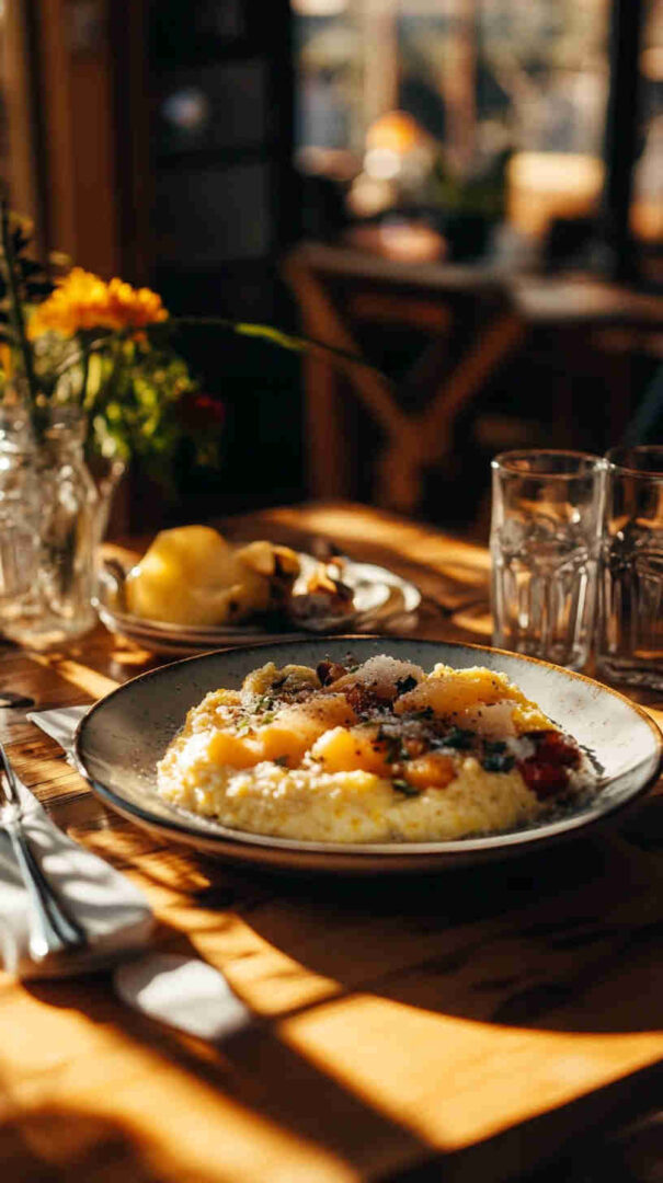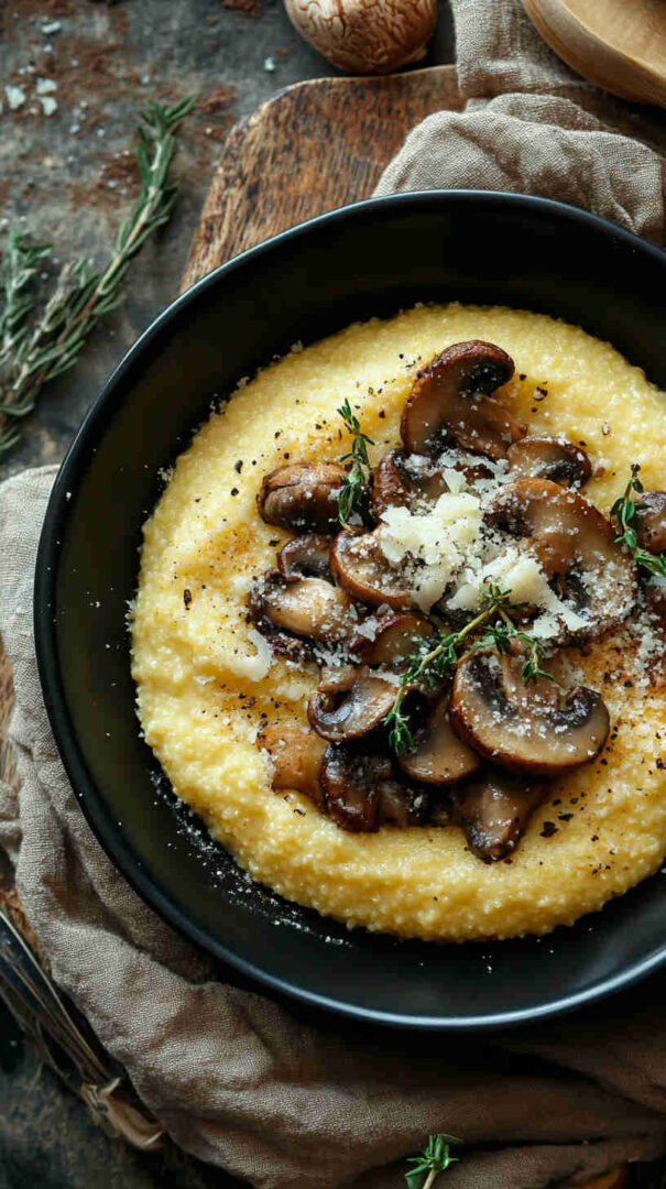 The Italian Brunch Polenta with Mushrooms and Parmesan is a comforting, Northern Italian-inspired brunch dish featuring creamy, slow-cooked polenta enriched with butter and freshly grated Parmigiano-Reggiano, topped with earthy sautéed mixed mushrooms (like cremini, shiitake, and oyster) flavored with garlic, thyme, white wine or broth, and a final flourish of more Parmesan.