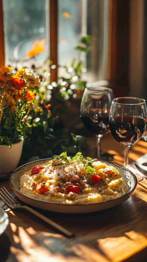 - Back to polenta: once tender and creamy (grains soft, no grit), remove from heat—stir in butter, grated Parmesan, and black pepper until silky and rich.