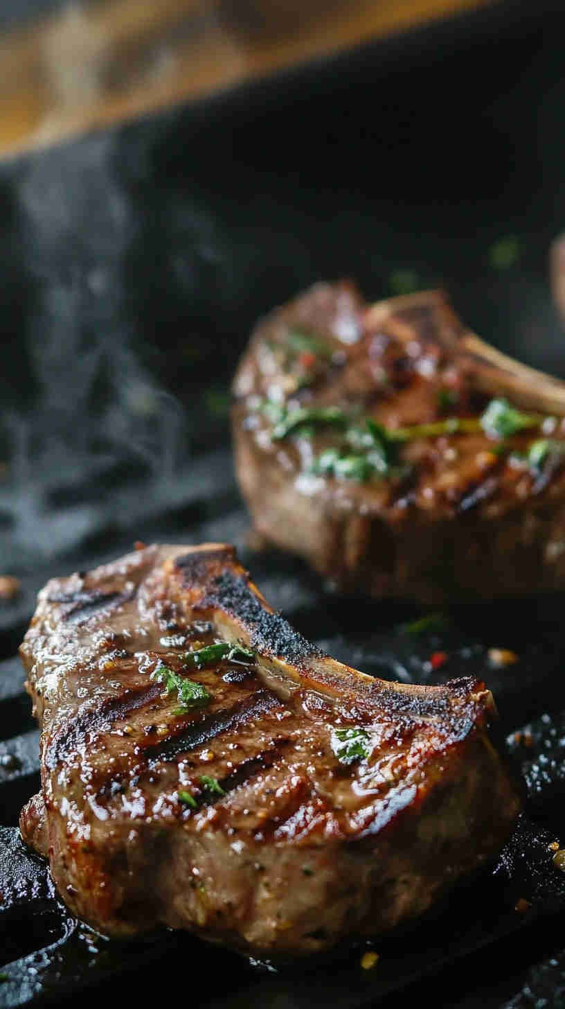 - Shake off excess marinade from the chops (to avoid flare-ups) and place them on the hot grill. Grill for 3-5 minutes per side, depending on thickness—aim for a gorgeous golden crust.