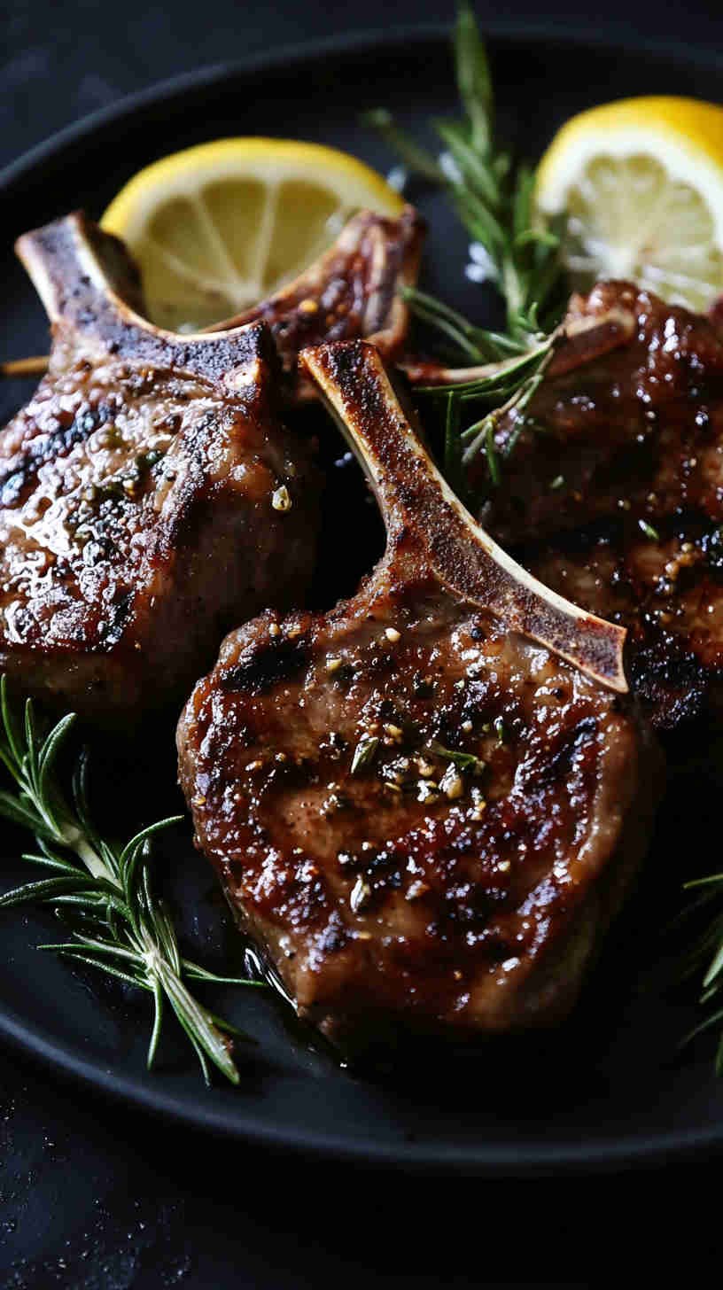 Juicy grilled Italian lamb chops marinated with garlic, rosemary, and lemon—perfect festive holiday main dish!