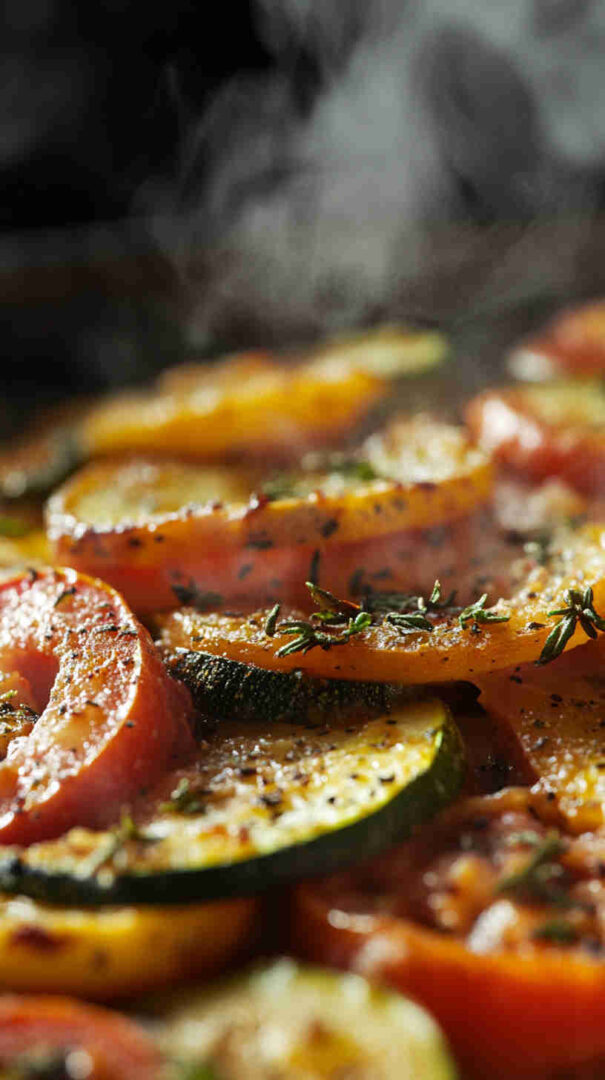 Eggplant acts as the hearty base — choose firm, glossy ones and don’t skip salting to avoid sponginess. Zucchini and yellow squash bring mild sweetness and moisture. Bell peppers (mix colors for visual appeal) add crunch and natural sweetness.