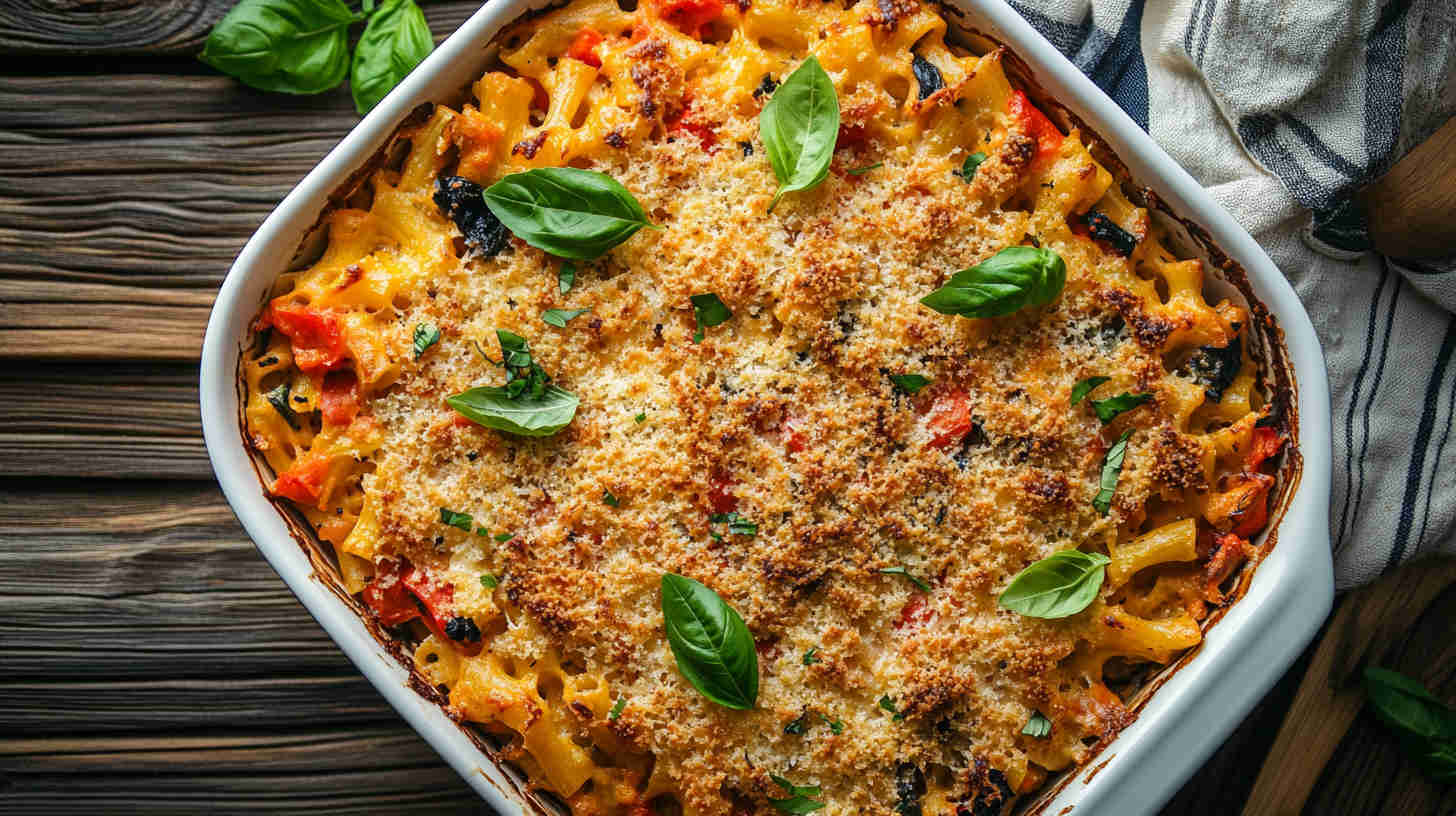 Cheesy baked pasta fused with classic French ratatouille veggies — hearty, flavorful, and perfect for cozy dinners.