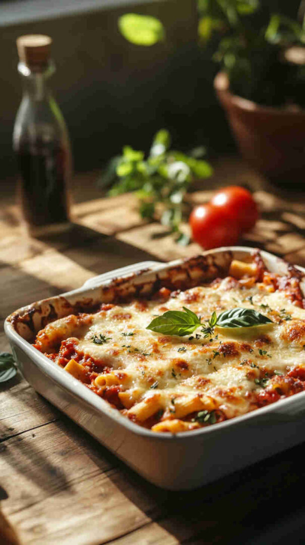 Indulge in this classic Italian Gluten-Free Baked Ziti, where perfectly cooked gluten-free pasta is tossed in rich marinara sauce, layered with creamy ricotta, gooey mozzarella, and savory Parmesan, then baked until bubbly and golden. It delivers all the comforting flavors of traditional baked ziti without any gluten, making it ideal for family dinners or cozy gatherings.