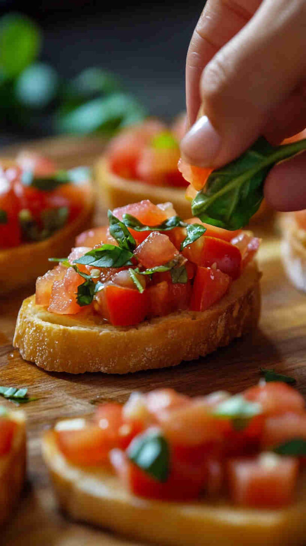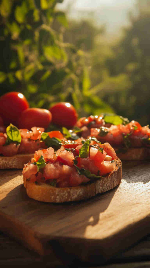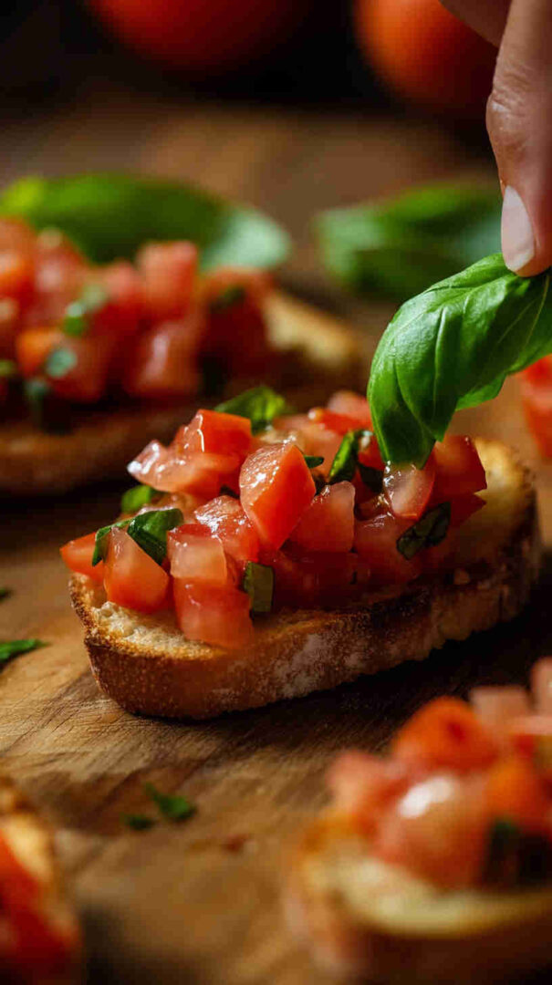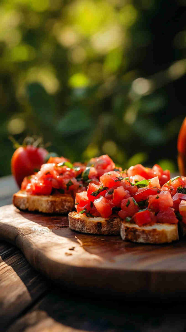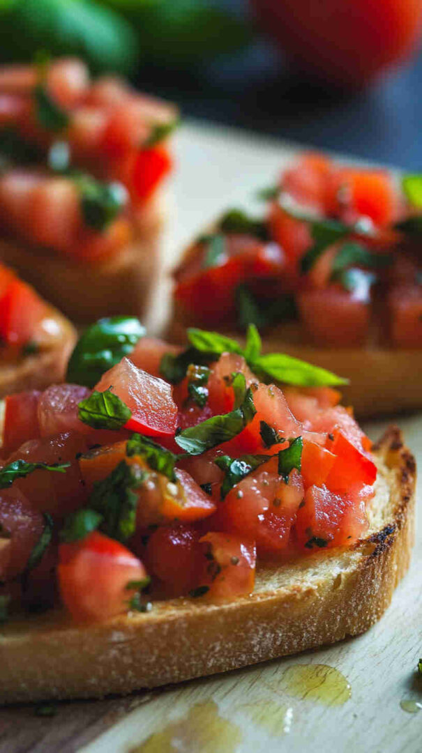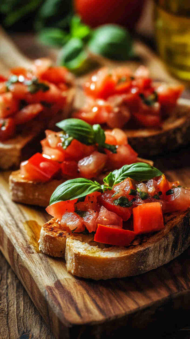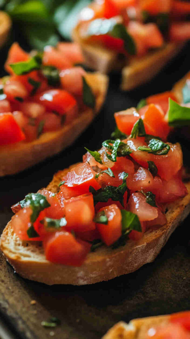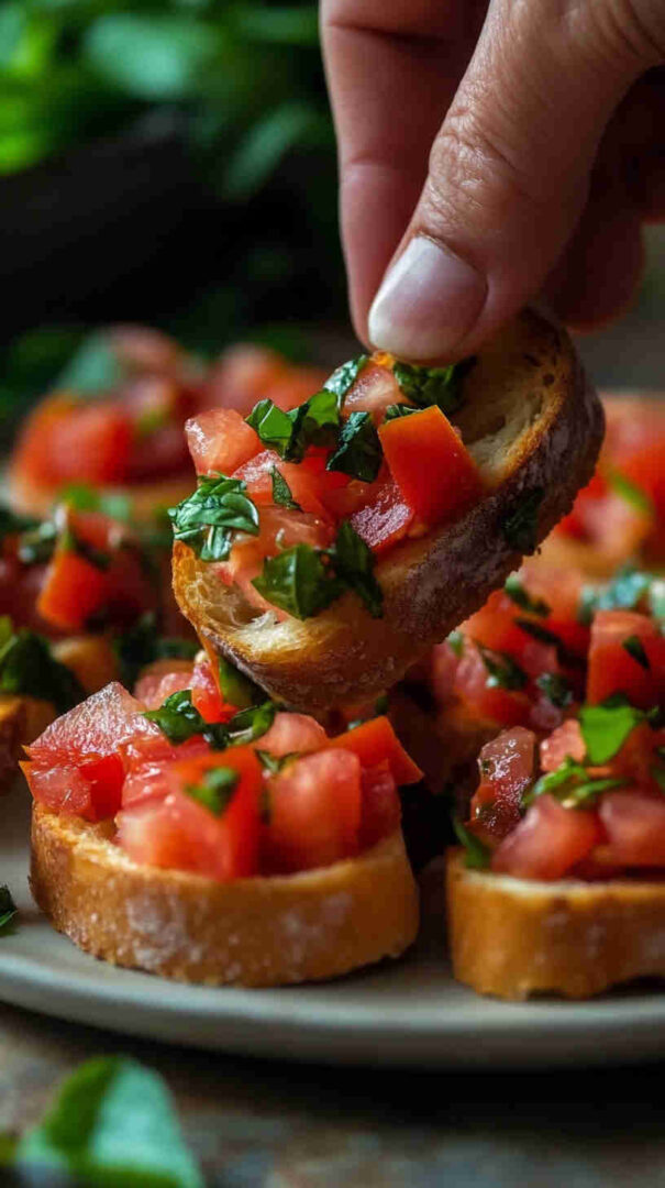 This recipe is wonderfully flexible. For a cheesy twist, add crumbled fresh mozzarella or burrata on top of the tomatoes just before serving for a Caprese-style bruschetta. If you prefer a sweeter profile, swap half the tomatoes for diced fresh peaches or strawberries in summer.