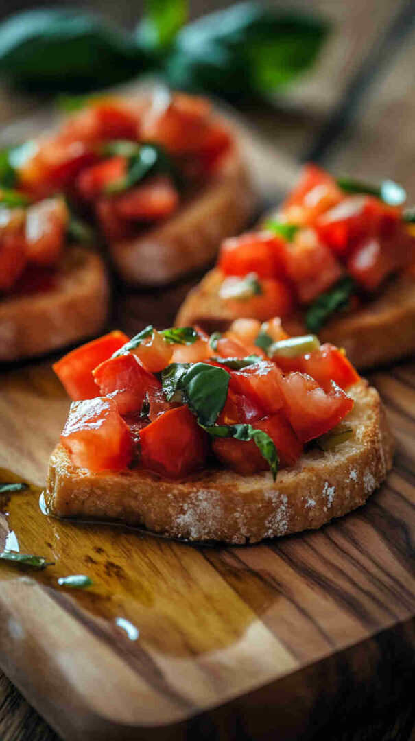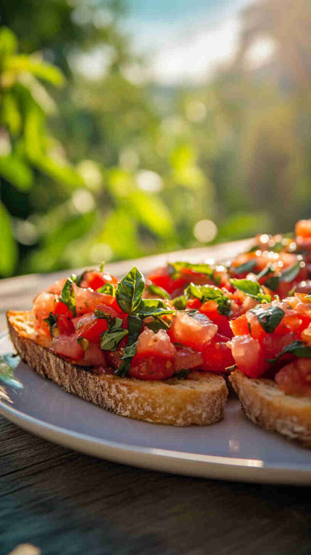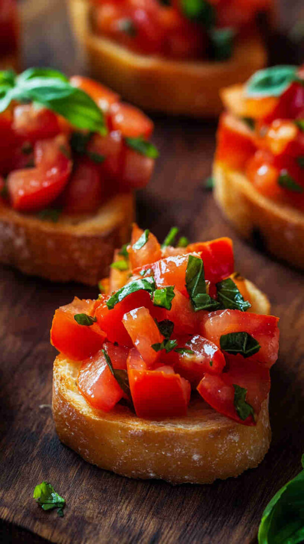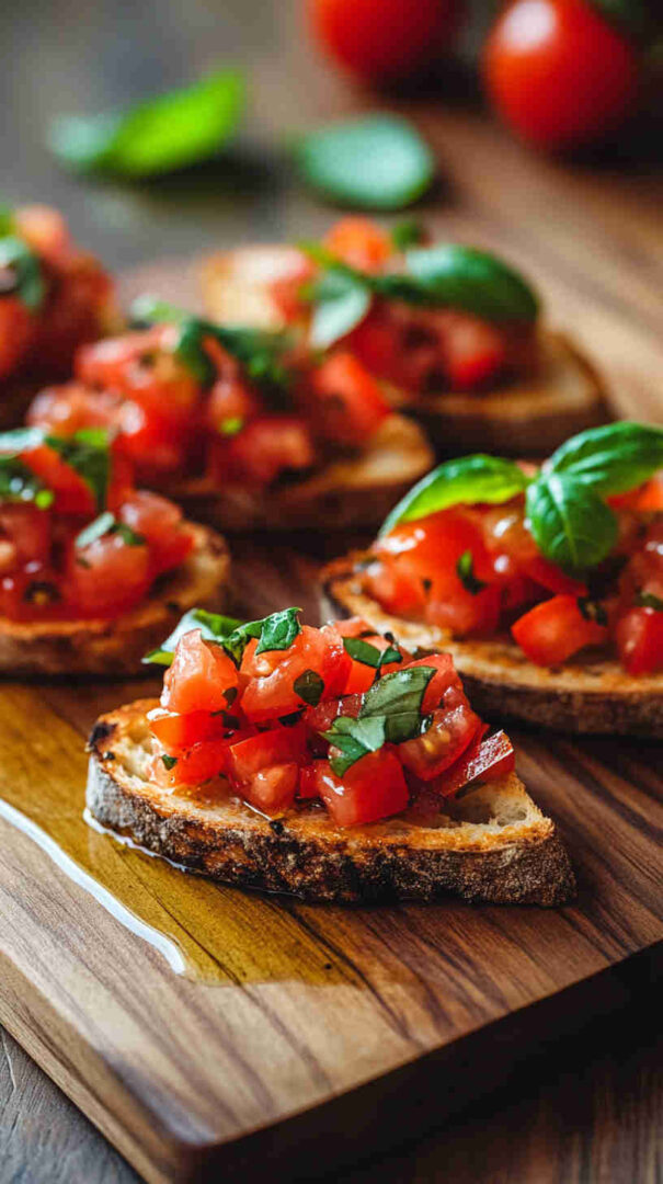 Fresh, crispy gluten-free Italian bruschetta loaded with juicy tomatoes, fragrant basil, and garlic—simple, vibrant, and delicious!