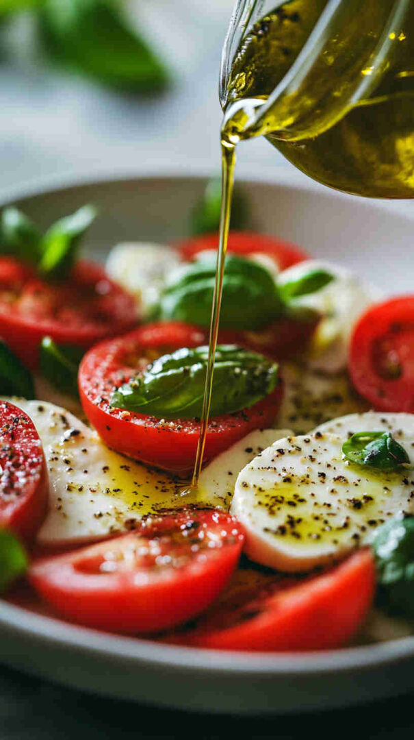 - Drizzle with love — Generously drizzle the high-quality extra virgin olive oil all over the arranged salad, letting it cascade over the slices for a glossy, mouthwatering finish.