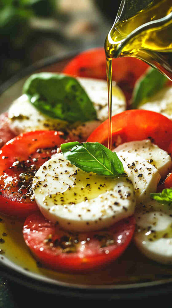 Fragrant fresh basil leaves add an essential herbal note—look for bright green, unblemished leaves with a strong aroma. Extra virgin olive oil should be cold-pressed and fruity for drizzling, while a high-quality balsamic vinegar or thick balsamic glaze brings a subtle tangy sweetness without overpowering the dish.