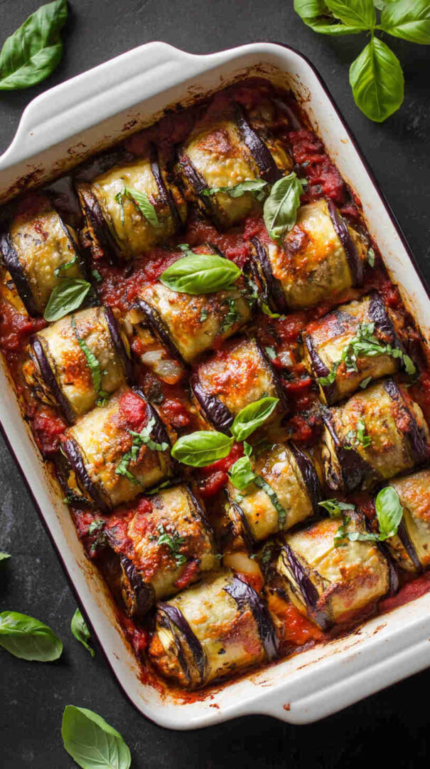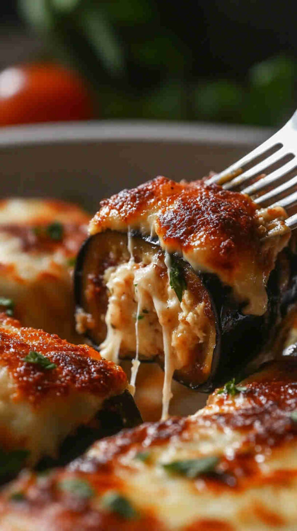 Use a piping bag or spoon to fill rolls neatly without tearing the eggplant. Cover with foil during the first half of baking to keep everything moist, then uncover for bubbly, golden cheese. Let the dish rest 10-15 minutes after baking so the rolls hold their shape when served. Taste the filling and add a pinch of nutmeg or extra herbs for authentic Italian depth.