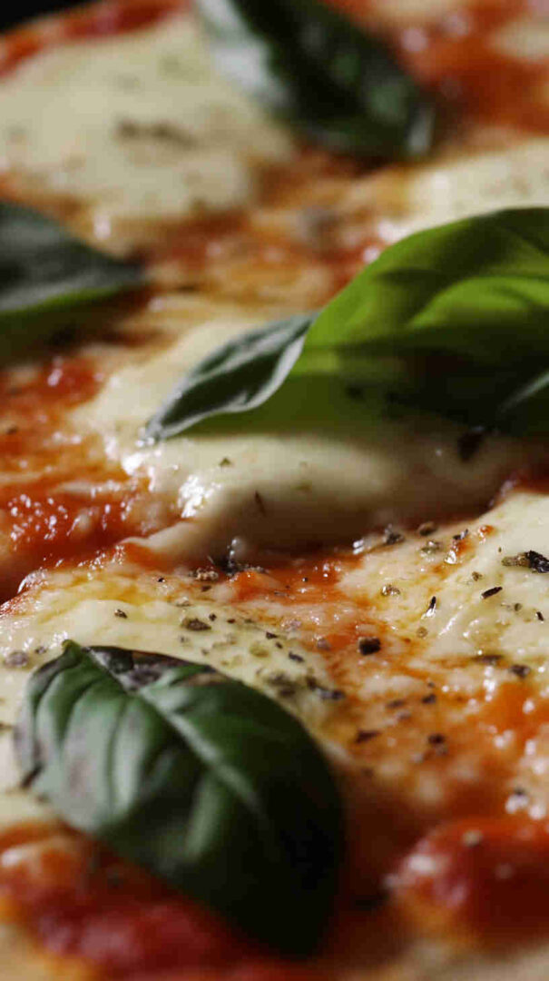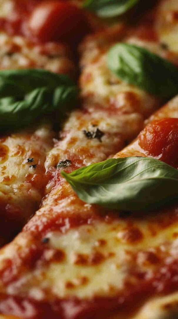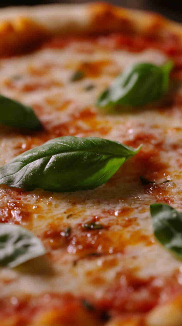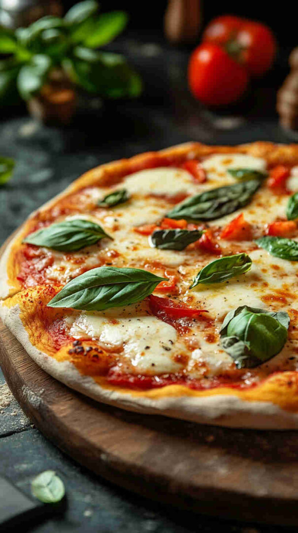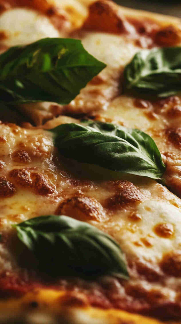 Add basil leaves after baking or in the last minute so they stay bright green and aromatic. If the crust browns too quickly, tent loosely with foil. Always let the pizza rest 2-3 minutes after baking for easier slicing and better cheese setting.