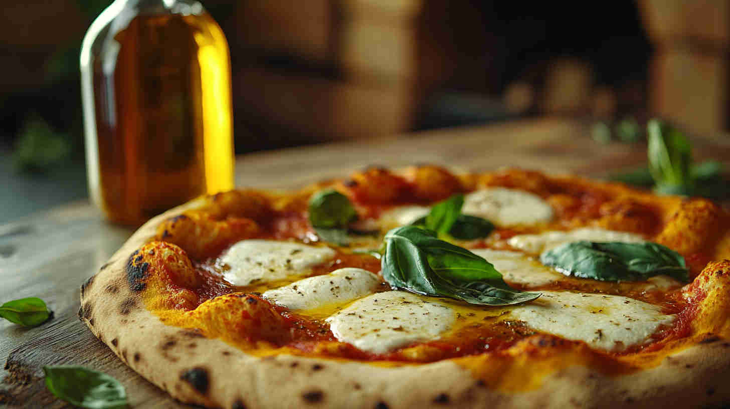 - Finally, pull the pizza out, scatter fresh basil leaves all over, drizzle with more extra-virgin olive oil, and let it rest for 2-3 minutes before slicing into wedges. Serve immediately while the cheese is still gloriously stretchy!