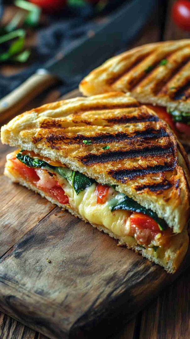 - Let the panini rest 1–2 minutes after pressing so cheese sets slightly before cutting.