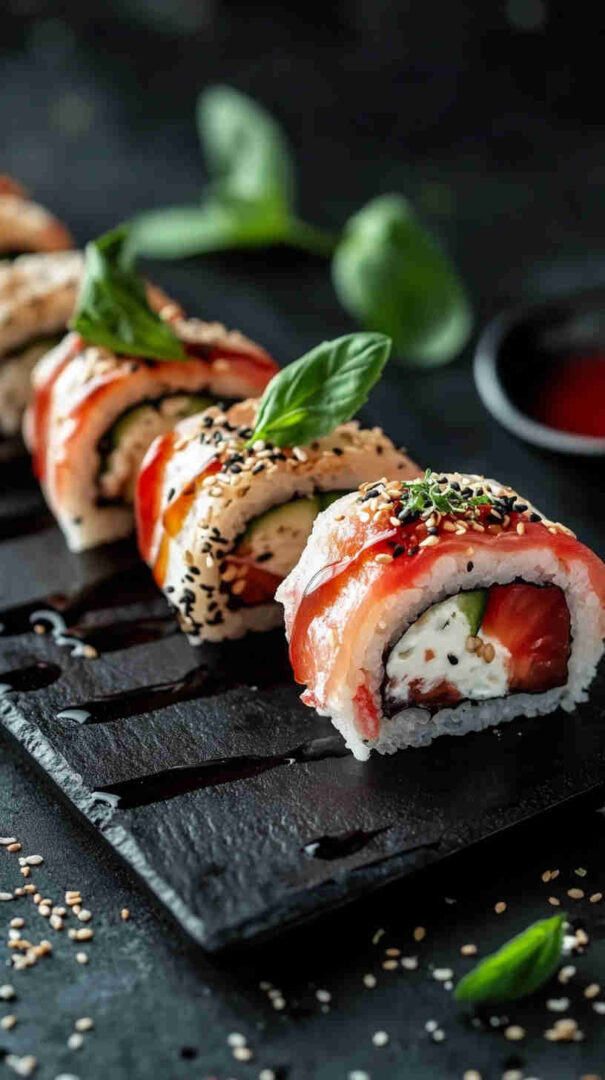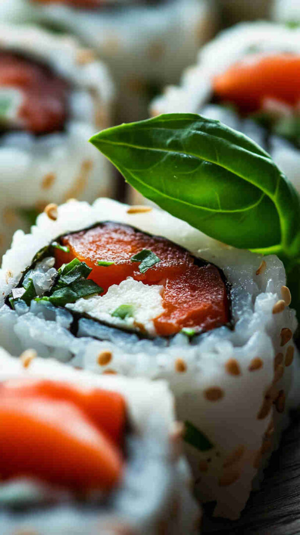 - No-rice lighter option — Skip rice entirely and wrap fillings in large basil leaves or prosciutto slices, then slice like sushi.