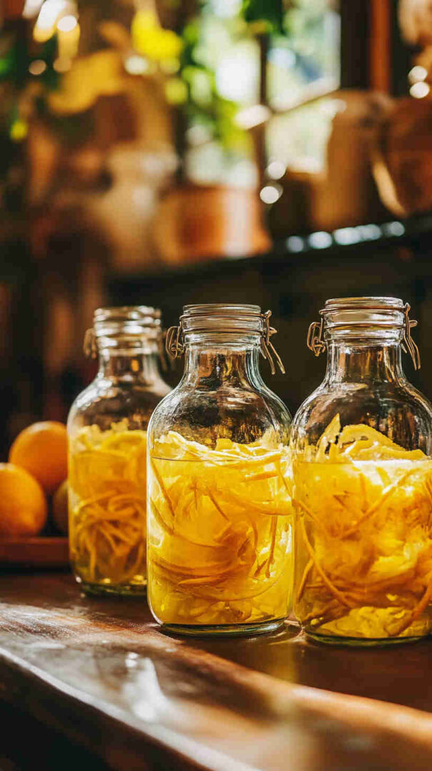 - Using a sharp vegetable peeler, carefully remove only the bright yellow outer zest from each lemon, avoiding the bitter white pith underneath; place all the fragrant peels into a large clean glass jar.