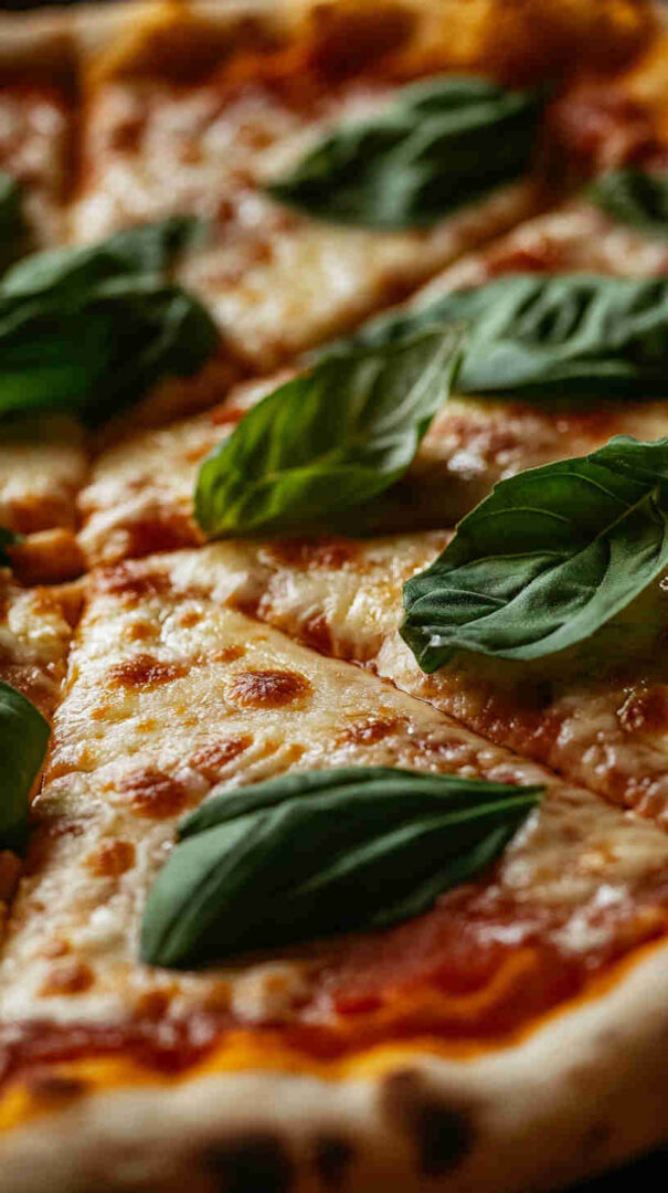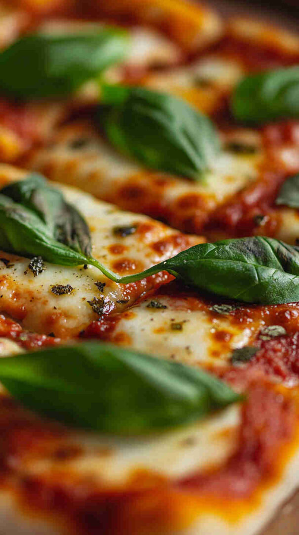 The Italian Margherita Pizza with Fresh Basil is the epitome of simple Italian elegance. This classic Neapolitan-style pizza features a thin, chewy homemade crust topped with vibrant San Marzano tomato sauce, creamy fresh mozzarella, fragrant basil leaves, and a drizzle of extra-virgin olive oil. It’s a timeless favorite that highlights quality ingredients in perfect harmony.