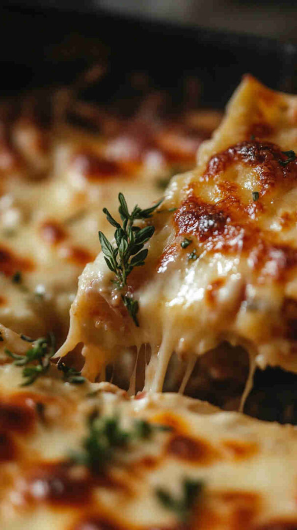 - Rest, garnish, and serve — Let it rest 10 minutes so it sets up nicely. Scatter fresh cilantro, green onions, or your favorite toppings. Scoop generous portions and enjoy every cheesy, fusion bite!