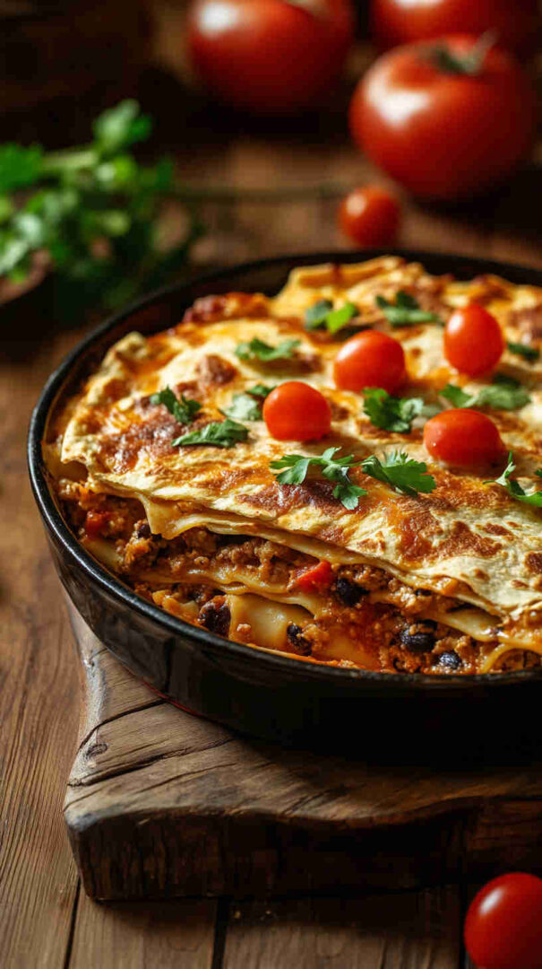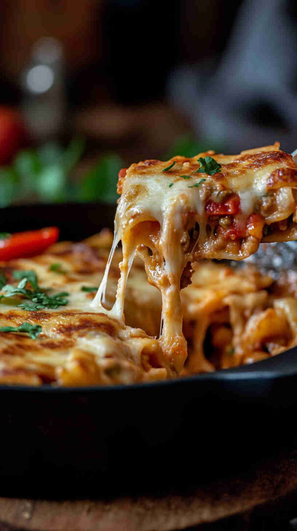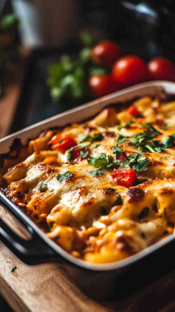 This dish brings the best of both worlds: the comforting, saucy satisfaction of an Italian pasta bake combined with the bold, spicy, cheesy appeal of a loaded Mexican quesadilla. It’s incredibly family-friendly—kids go crazy for the gooey cheese and familiar taco-like flavors, while adults appreciate the depth from garlic, onions, and a kick of chili.
