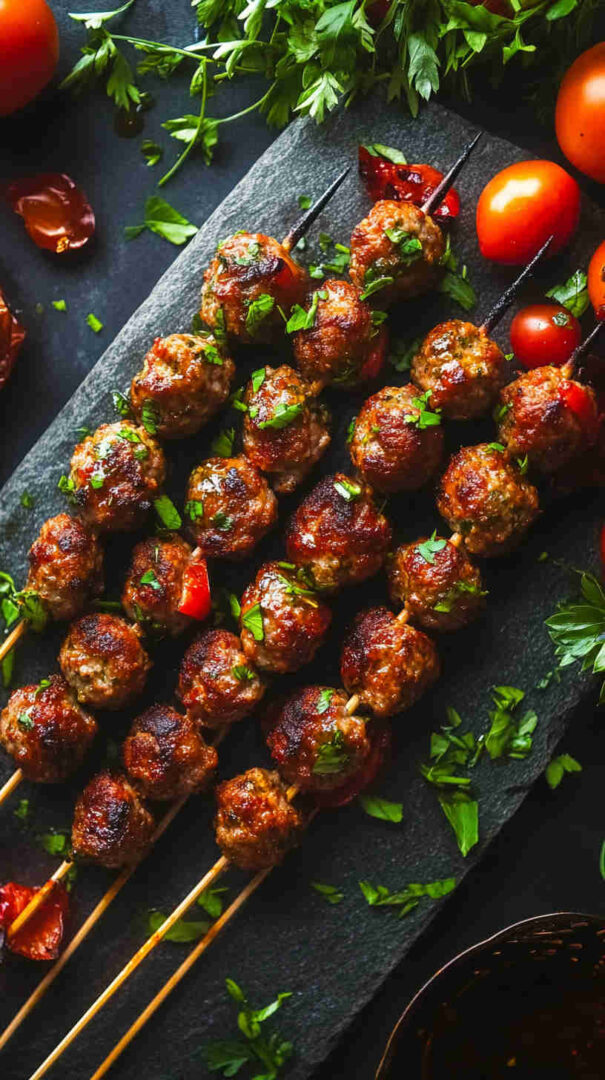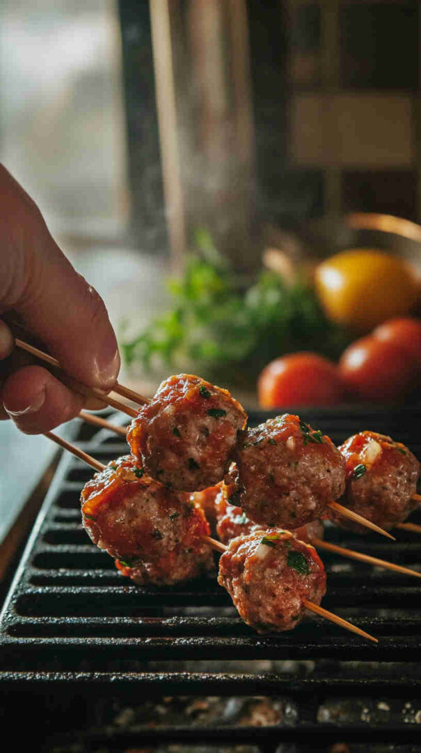 - No grill: Bake meatballs at 400°F for 12–15 minutes, then assemble and broil skewers briefly for color.