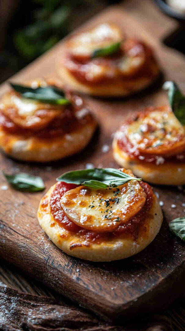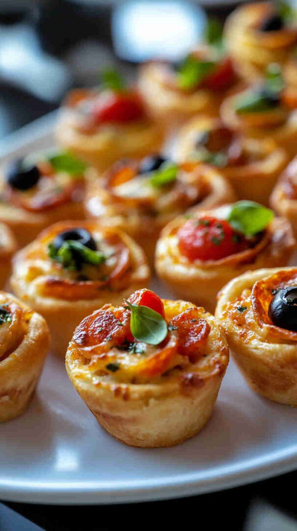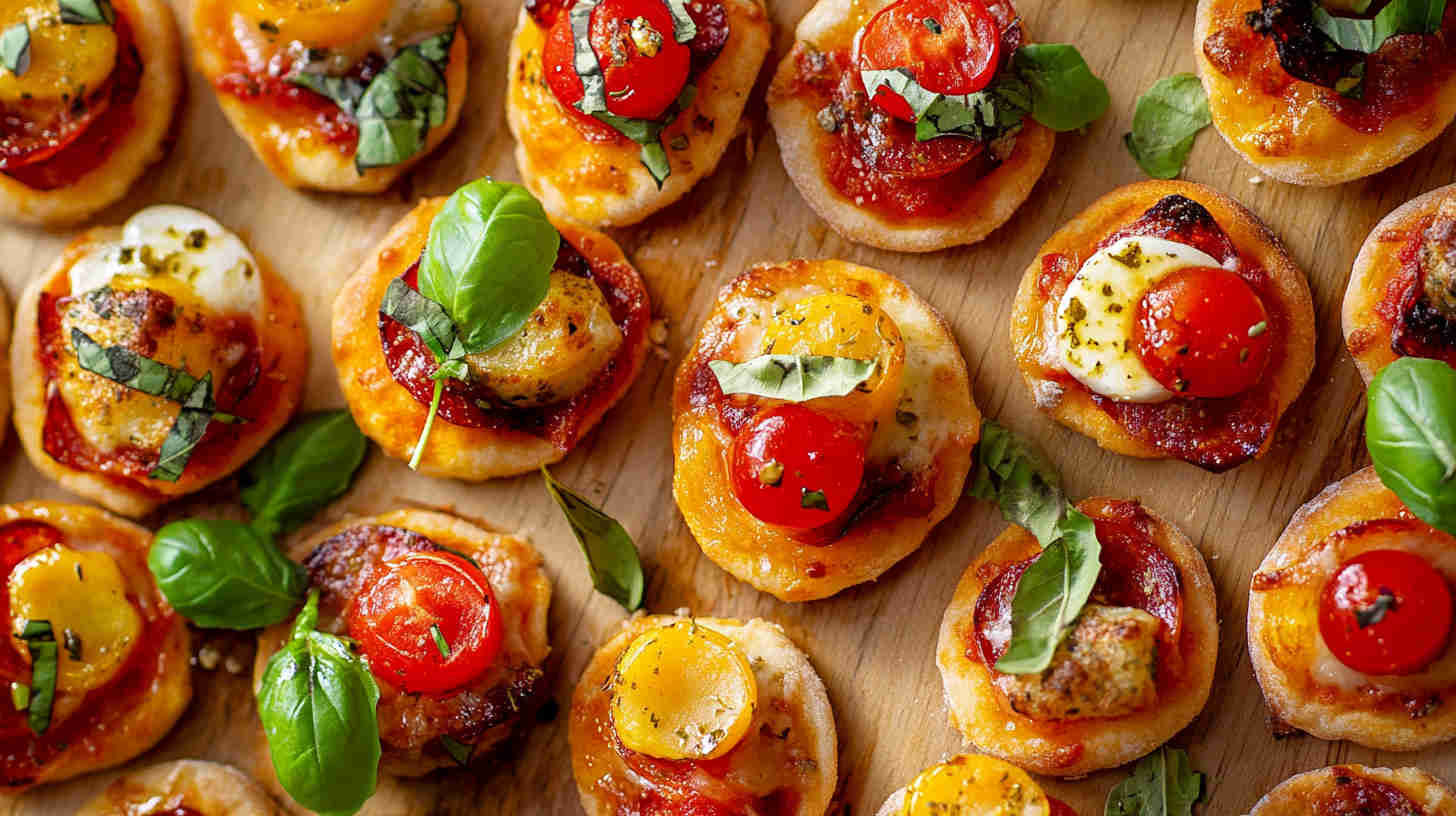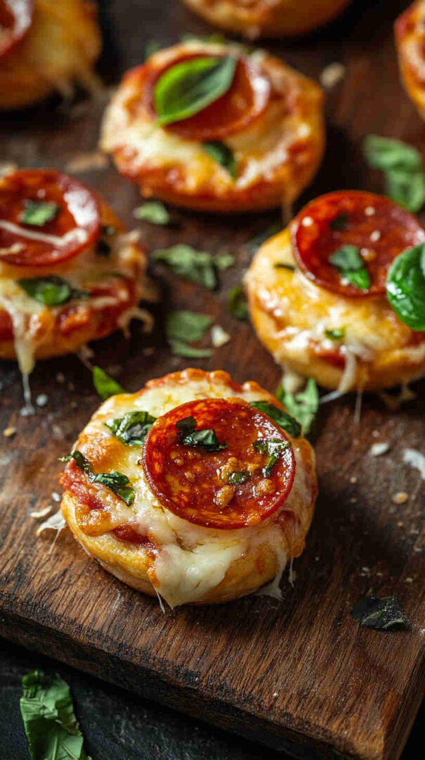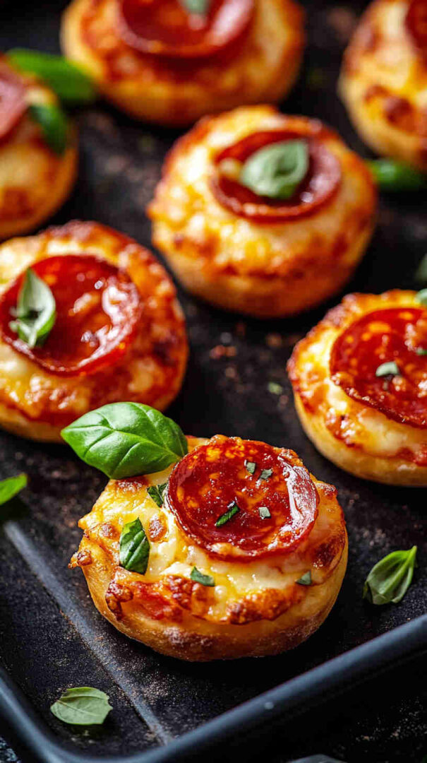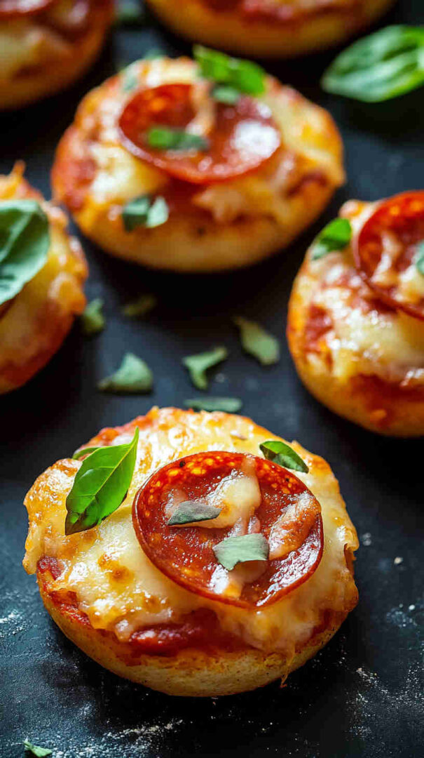 The Italian Mini Pizza Bites (also known as pizzette) are adorable, bite-sized Italian appetizers featuring a soft, golden dough base topped with classic marinara sauce, gooey melted mozzarella, savory pepperoni or Italian sausage, and a sprinkle of fresh basil or oregano.