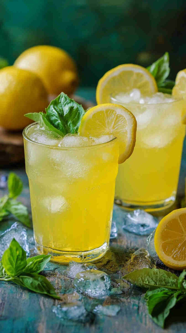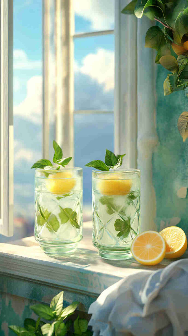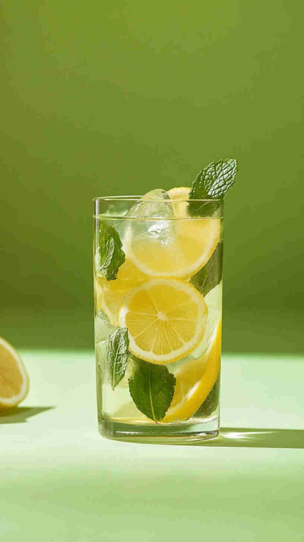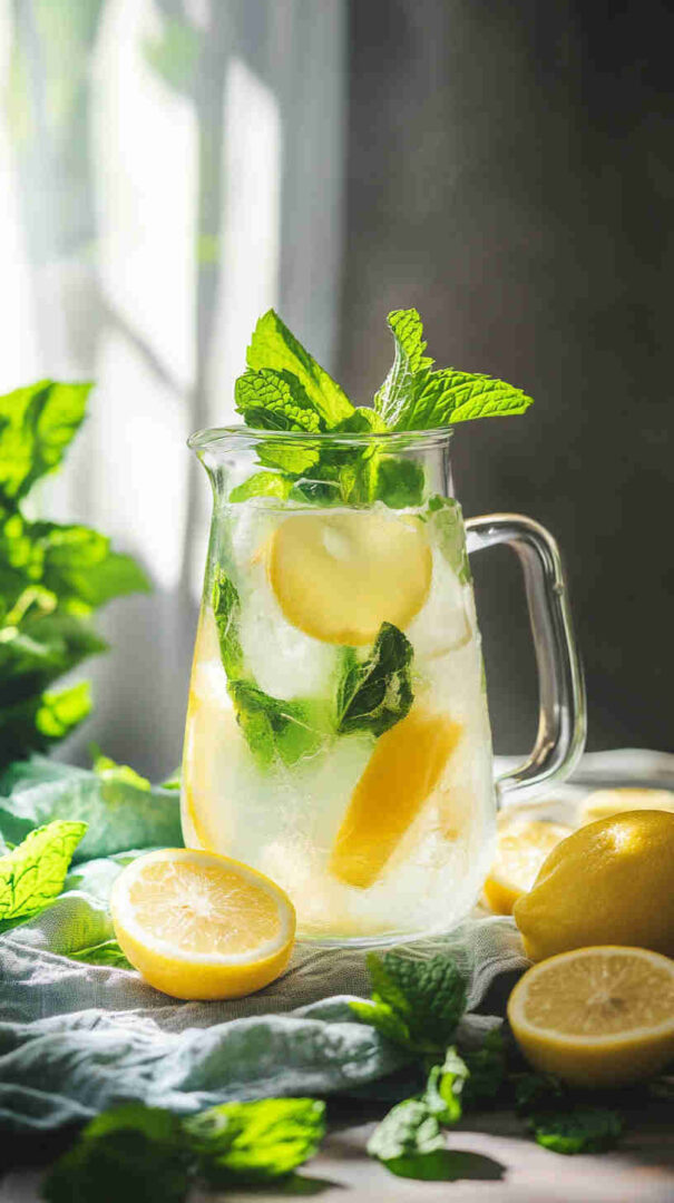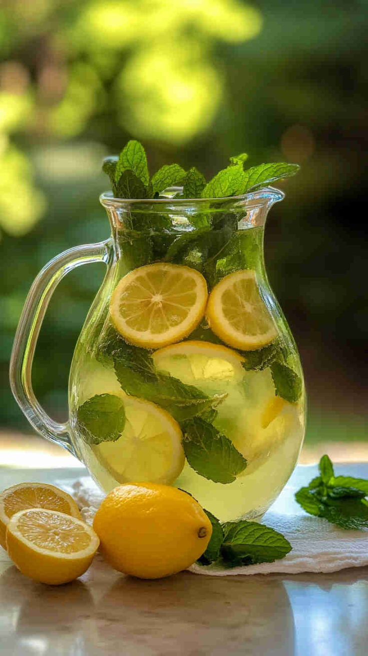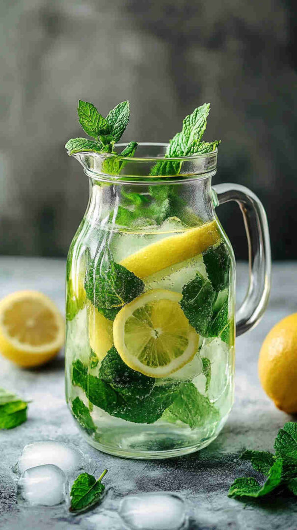 Ice cubes or crushed ice keep everything refreshingly cold. Optional: a few thin lemon slices or extra mint sprigs for beautiful presentation that enhances both look and subtle flavor.