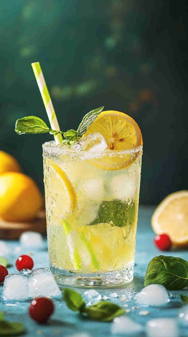 Zesty Italian mint lemonade with fresh lemons, cool mint, and sparkling water. Bright, refreshing summer drink.