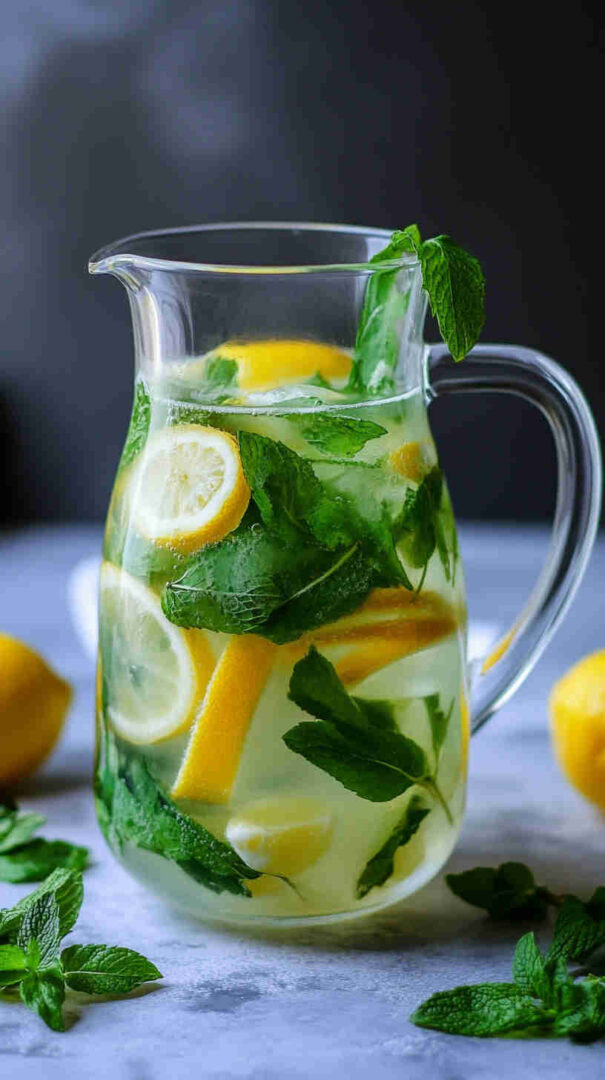 Fresh, juicy lemons are the star — choose ripe ones that feel heavy for their size, providing bright acidity and natural sweetness. Fragrant fresh mint leaves (spearmint works wonderfully) bring a cool, herbal freshness that defines the Italian touch; avoid dried mint here as it lacks the vibrant aroma.