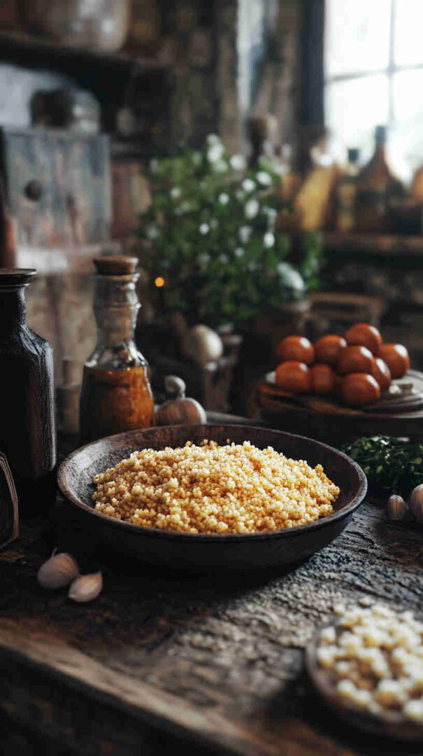 - Couscous: The star—use fine Moroccan-style couscous for quick absorption and light, fluffy results. It’s made from semolina wheat, similar to tiny pasta.