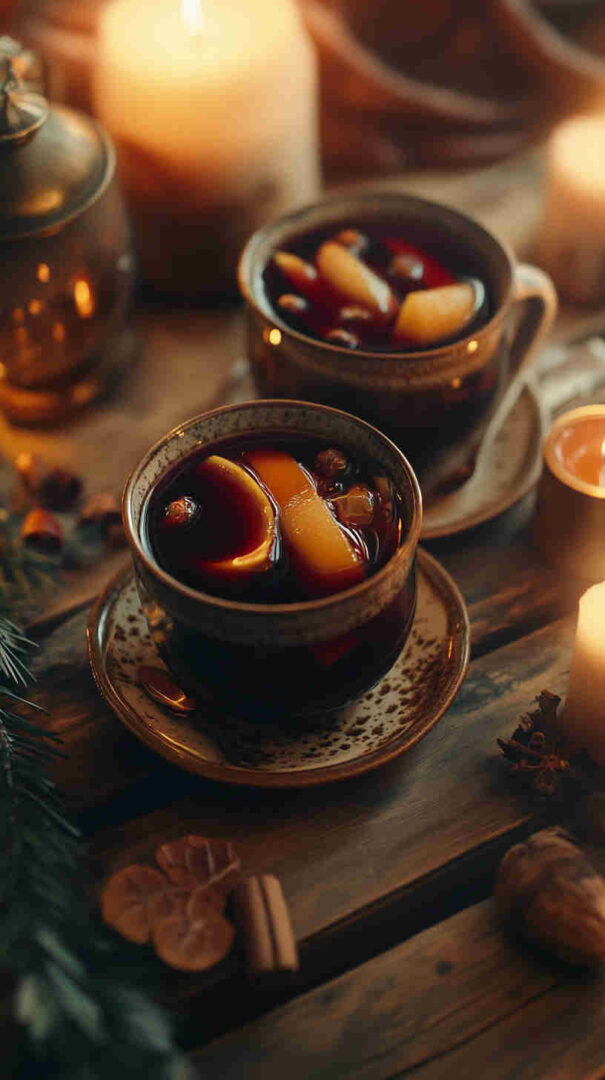 Whole spices such as cinnamon sticks, cloves, star anise, and cardamom pods deliver warm, aromatic depth without the bitterness of ground spices. Honey or sugar adds gentle sweetness that balances the wine’s tannins.