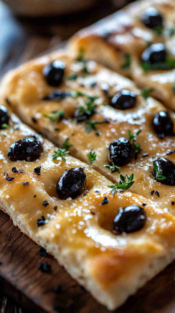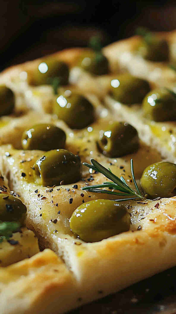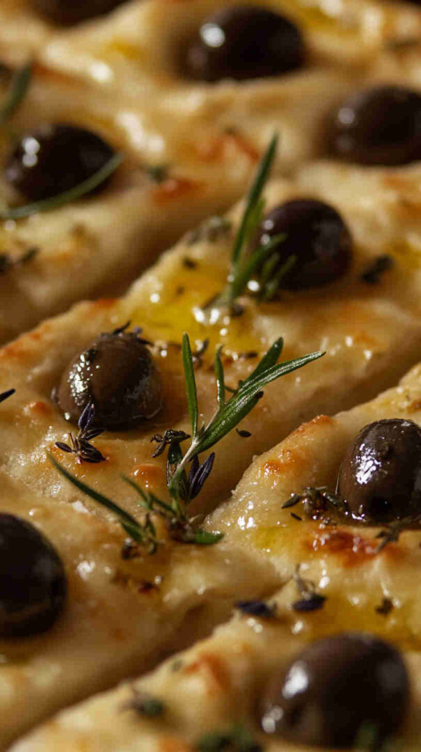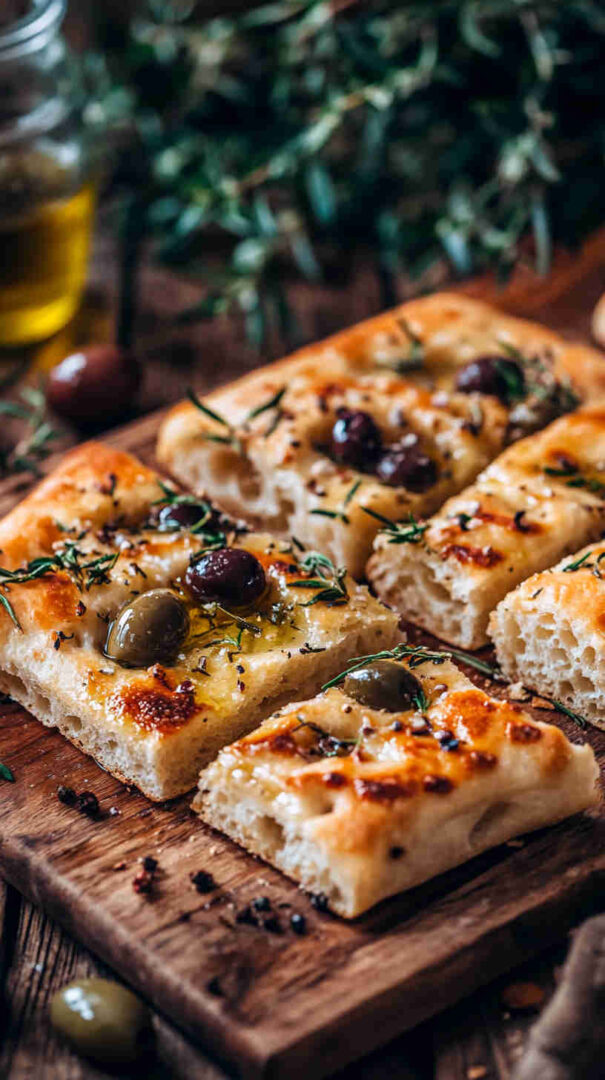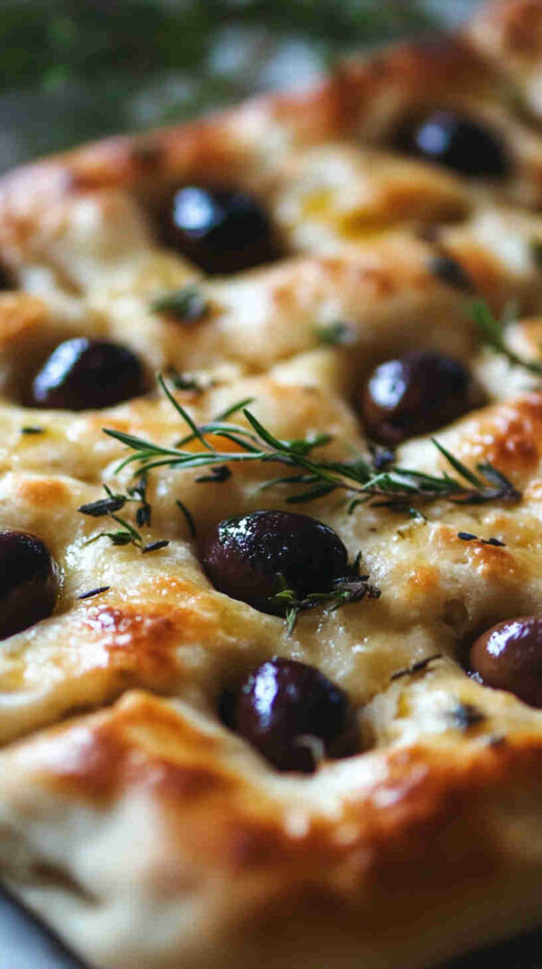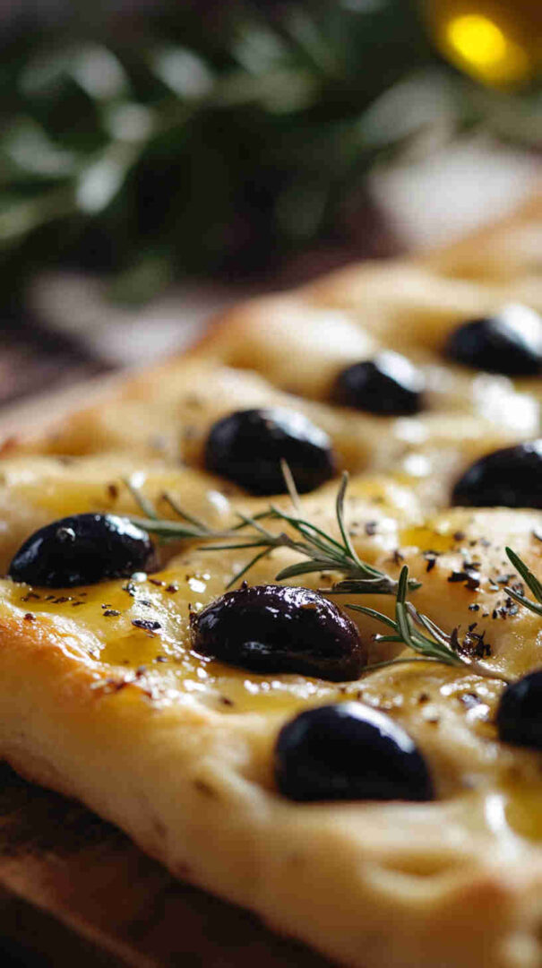 Topped generously with plump olives, fresh herbs, and a drizzle of high-quality olive oil, every bite bursts with Mediterranean charm: salty, herby, and irresistibly olive-oily. It’s versatile enough to serve warm with soups, alongside pasta, dipped in balsamic, or even as a base for sandwiches.