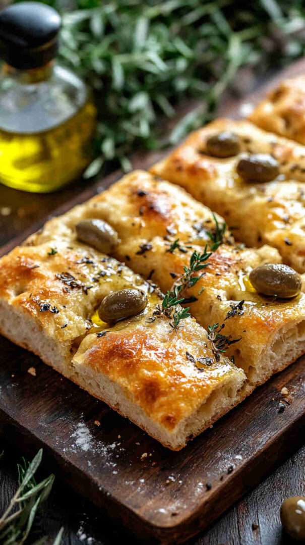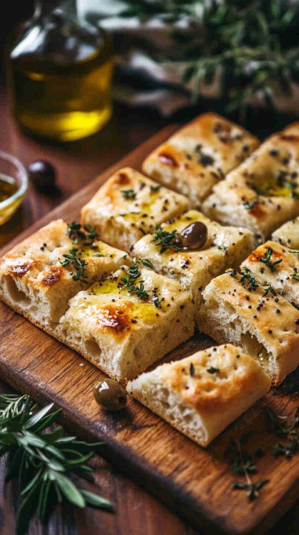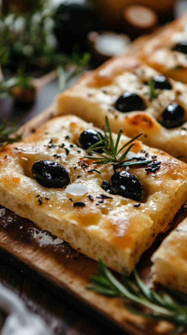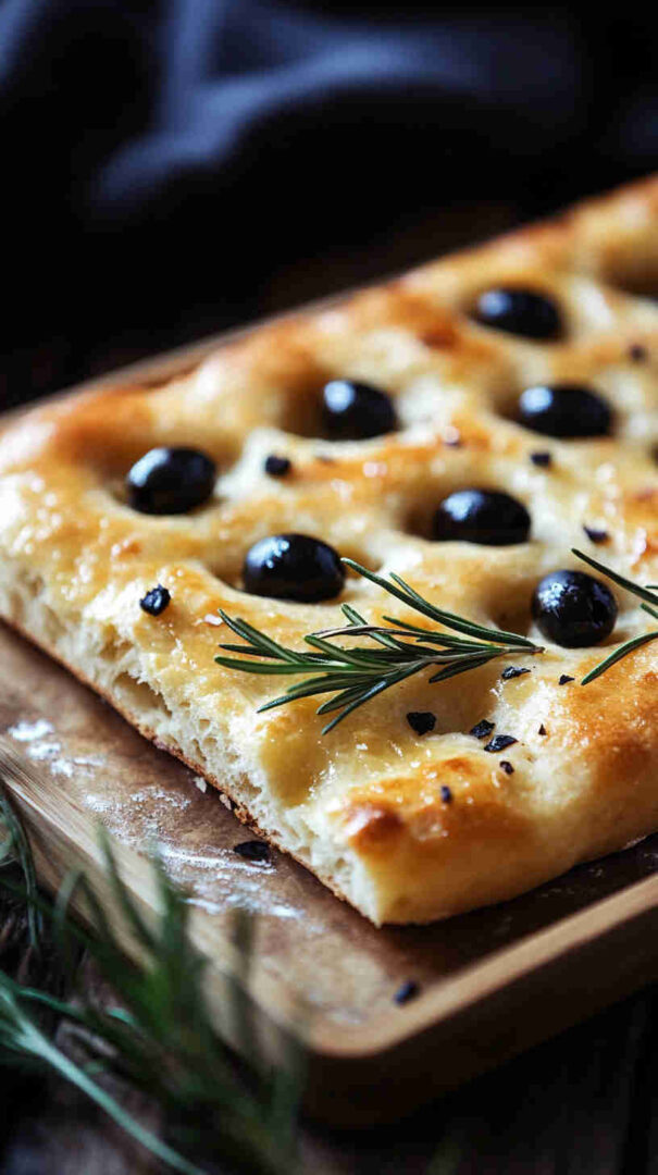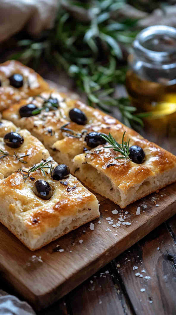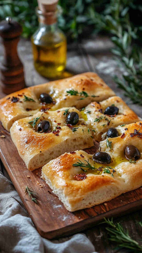 Topped generously with plump olives, fresh herbs, and a drizzle of high-quality olive oil, every bite bursts with Mediterranean charm: salty, herby, and irresistibly olive-oily. It’s versatile enough to serve warm with soups, alongside pasta, dipped in balsamic, or even as a base for sandwiches.