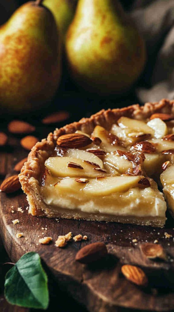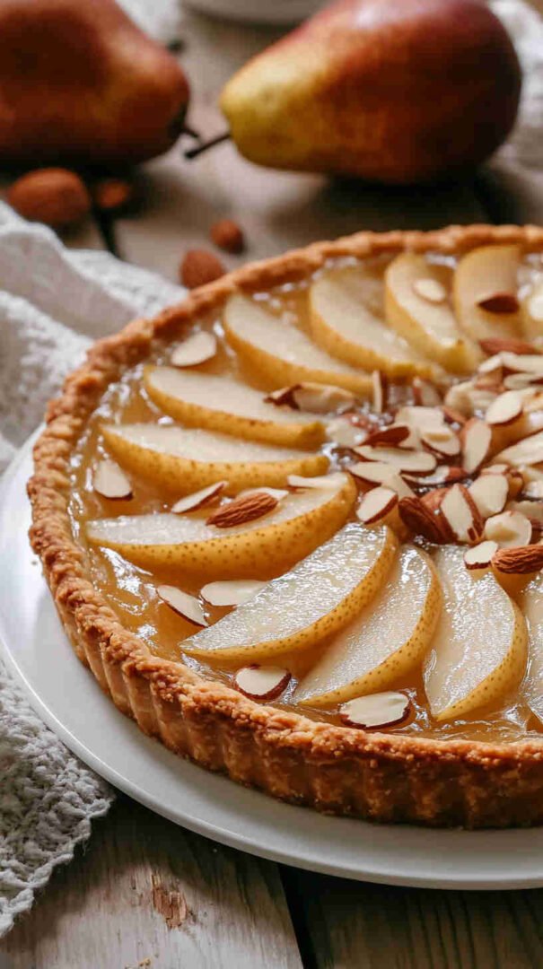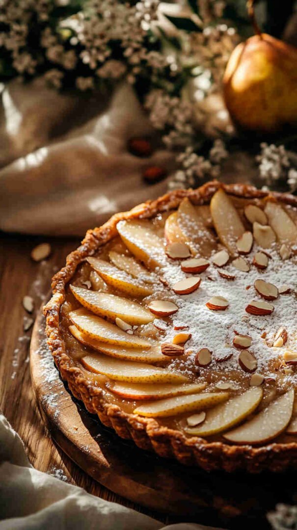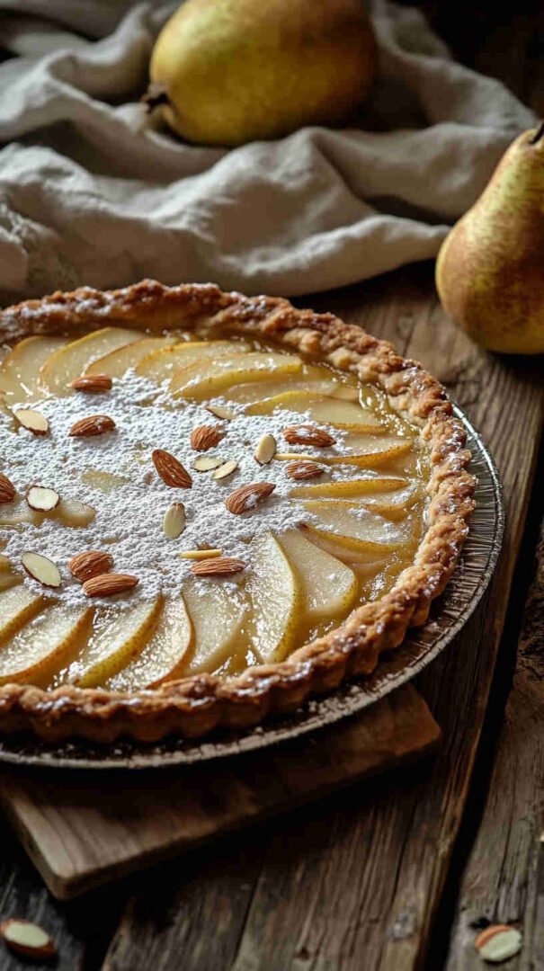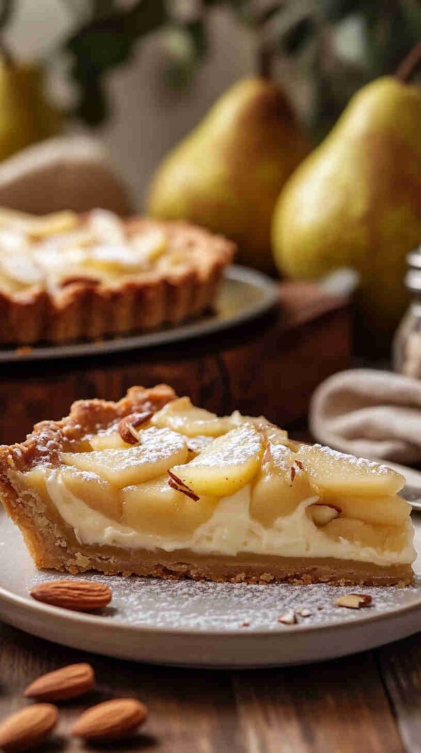 Elegant Italian tart with buttery crust, creamy almond frangipane, and juicy pear slices—simple, nutty, and perfectly balanced.