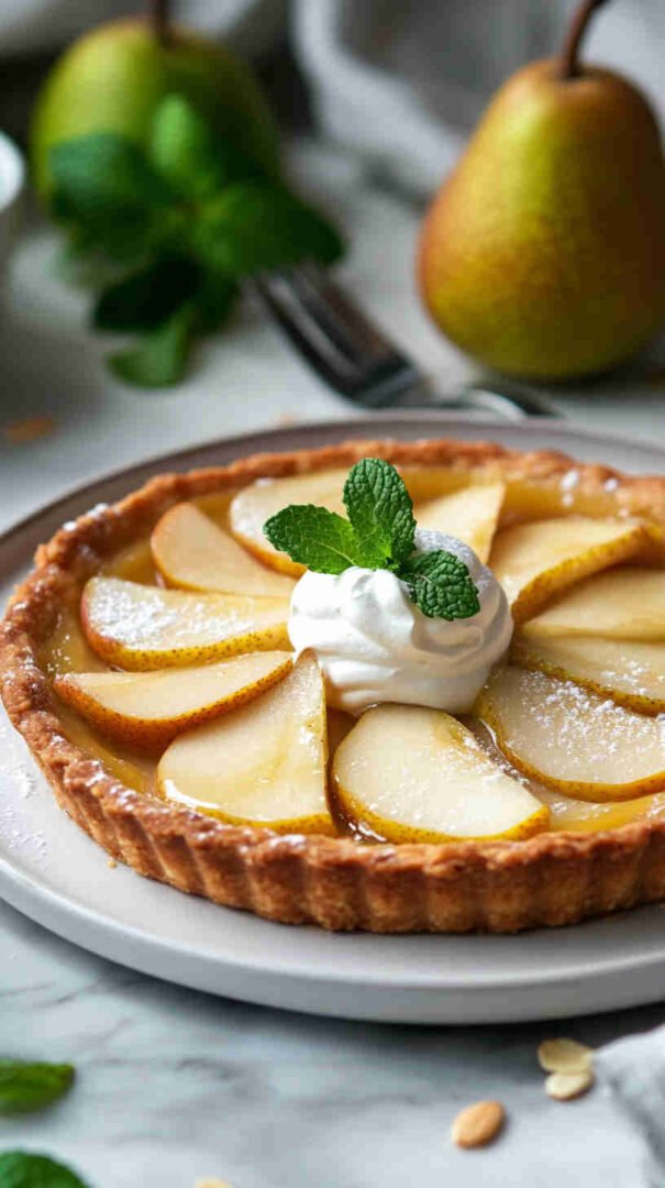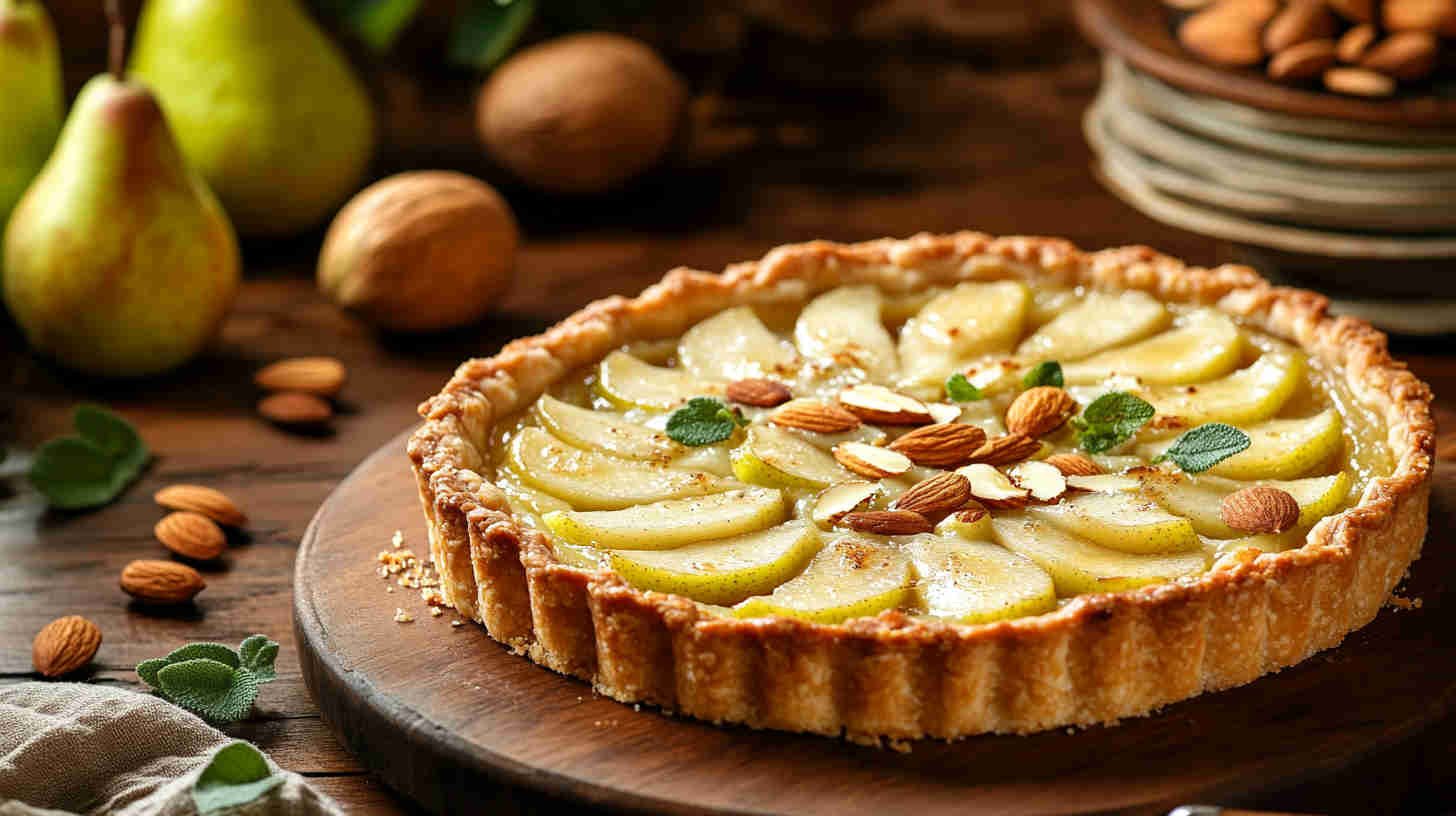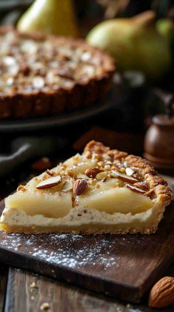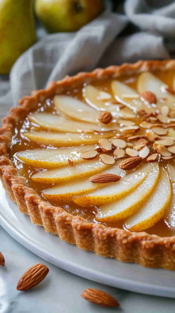 Elegant Italian tart with buttery crust, creamy almond frangipane, and juicy pear slices—simple, nutty, and perfectly balanced.