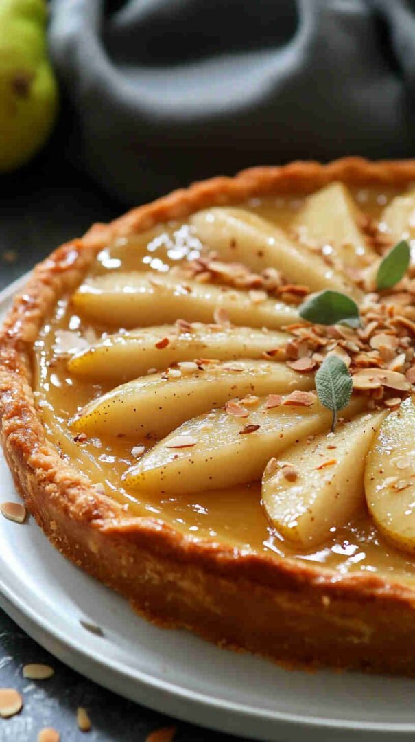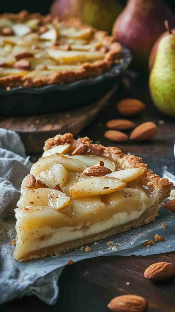 This tart is wonderfully adaptable to suit tastes, seasons, or pantry limitations. Swap pears for thinly sliced apples, plums, apricots, or peaches for a different fruit twist—stone fruits work especially well with the almond base. For a gluten-free version, use a 1:1 gluten-free flour blend in the crust and ensure almond flour is certified gluten-free.